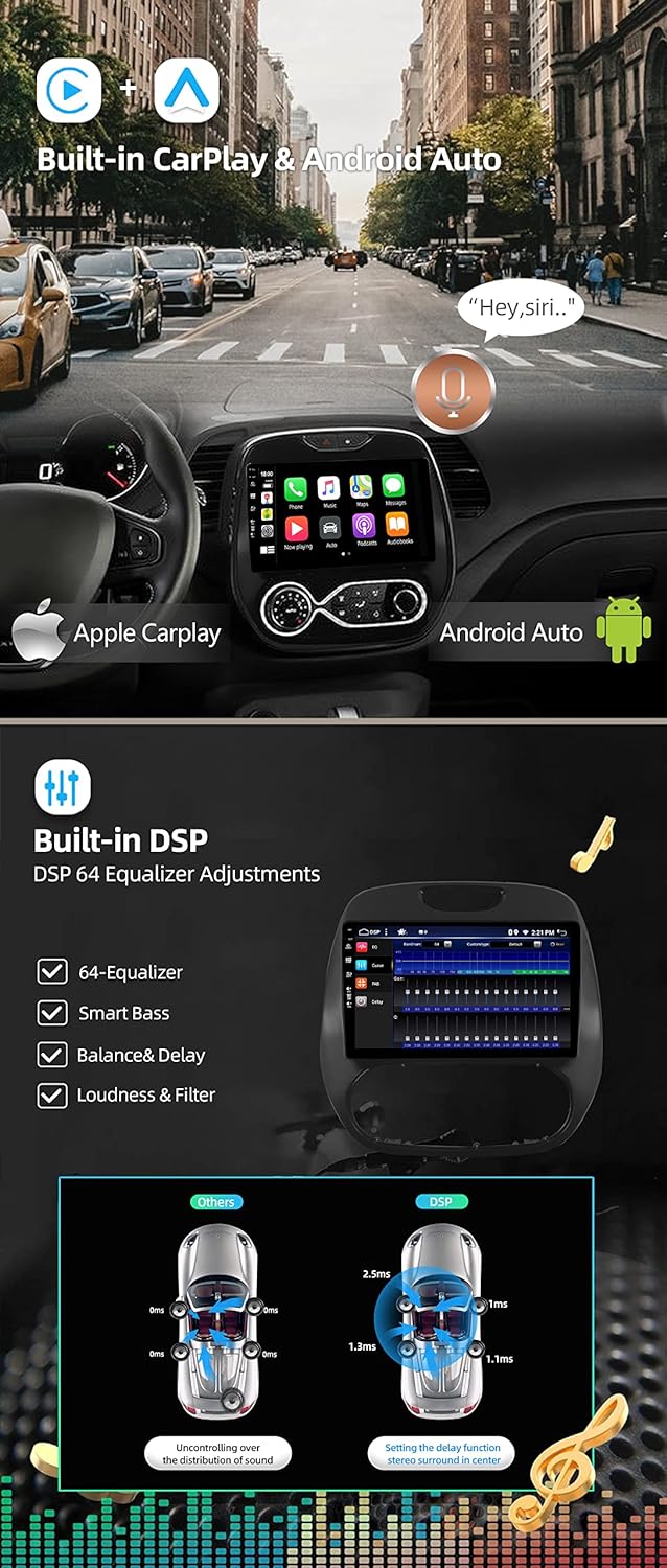 - 【DSP - CARPLAY - ANDROID AUTO】 DSP verfügt über einen vollständig digitalen Prozessorchip und einen 64-Bit-Doppelpräzisionsmodus. Geniessen Sie je nach Bedarf VIP-Soundeffekte an verschiedenen Orten. Integriertes drahtloses Carplay und Android