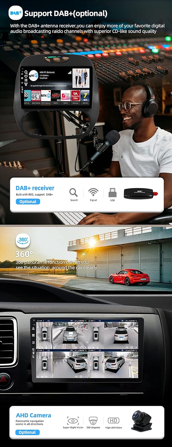 - 【SPEZIALITÄT】 Unterstützt DAB + (DAB-Adapter: B083Q7YG4F) / 4K-Video (3840×2160 Pixel) / 1080P HD-Video / MirrorLink mit iOS- oder Android-Telefon / Integriertes WiFi-Modem / Online- und Offline-GPS-Navigations-Apps, Unterstützung von 3D-Karten