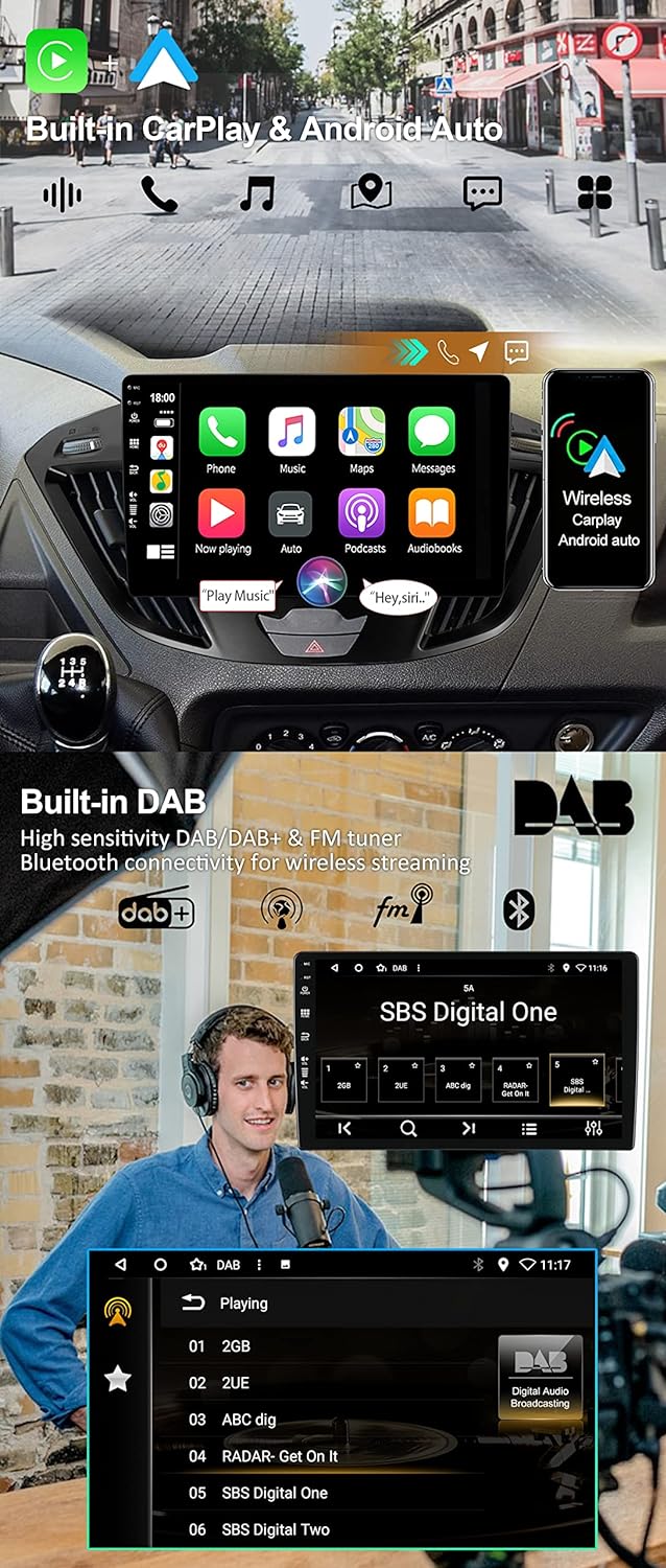 - 【CARPLAY - ANDROID AUTO - DSP】 Eingebaut in Carplay und Android Auto (drahtlos oder kabelgebunden), schliessen Sie einfach Ihr Telefon an und sehen Sie sich Funktionen wie Telefonbuch, Musik und Navigation direkt an. Konzentrieren Sie sich auf die