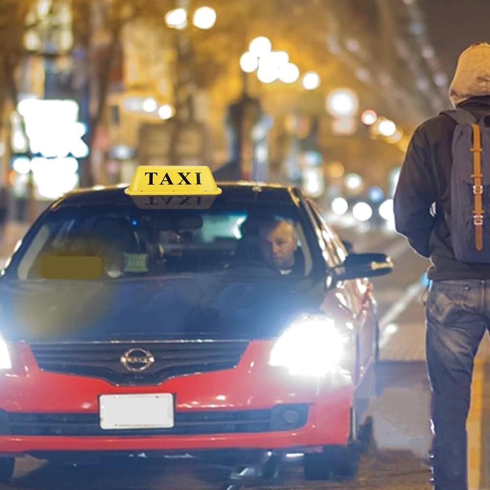 - [Taxi Schild]: Grosser und stabiler Chip, Wasserdichtes und sonnenfestes Design, Magnetfuss, einfache Befestigung auf dem Dach; Passend für alle Arten von Fahrzeugen mit 12 V; Keine Verzögerung bei der Beleuchtung, viel sicherer, verhindert die Gefahr