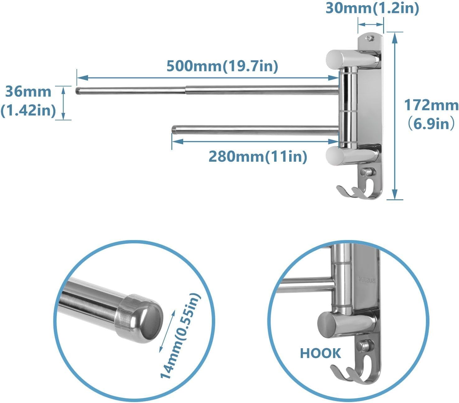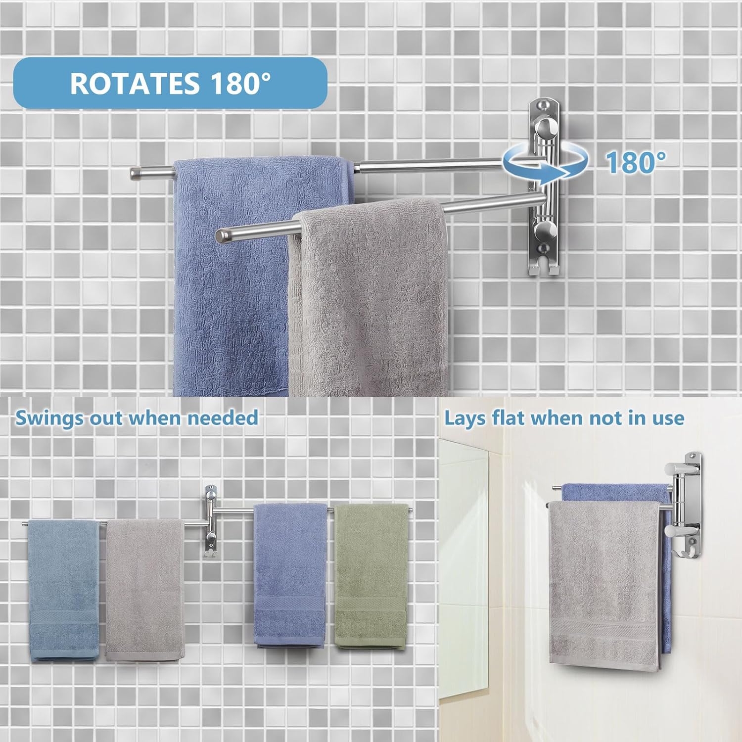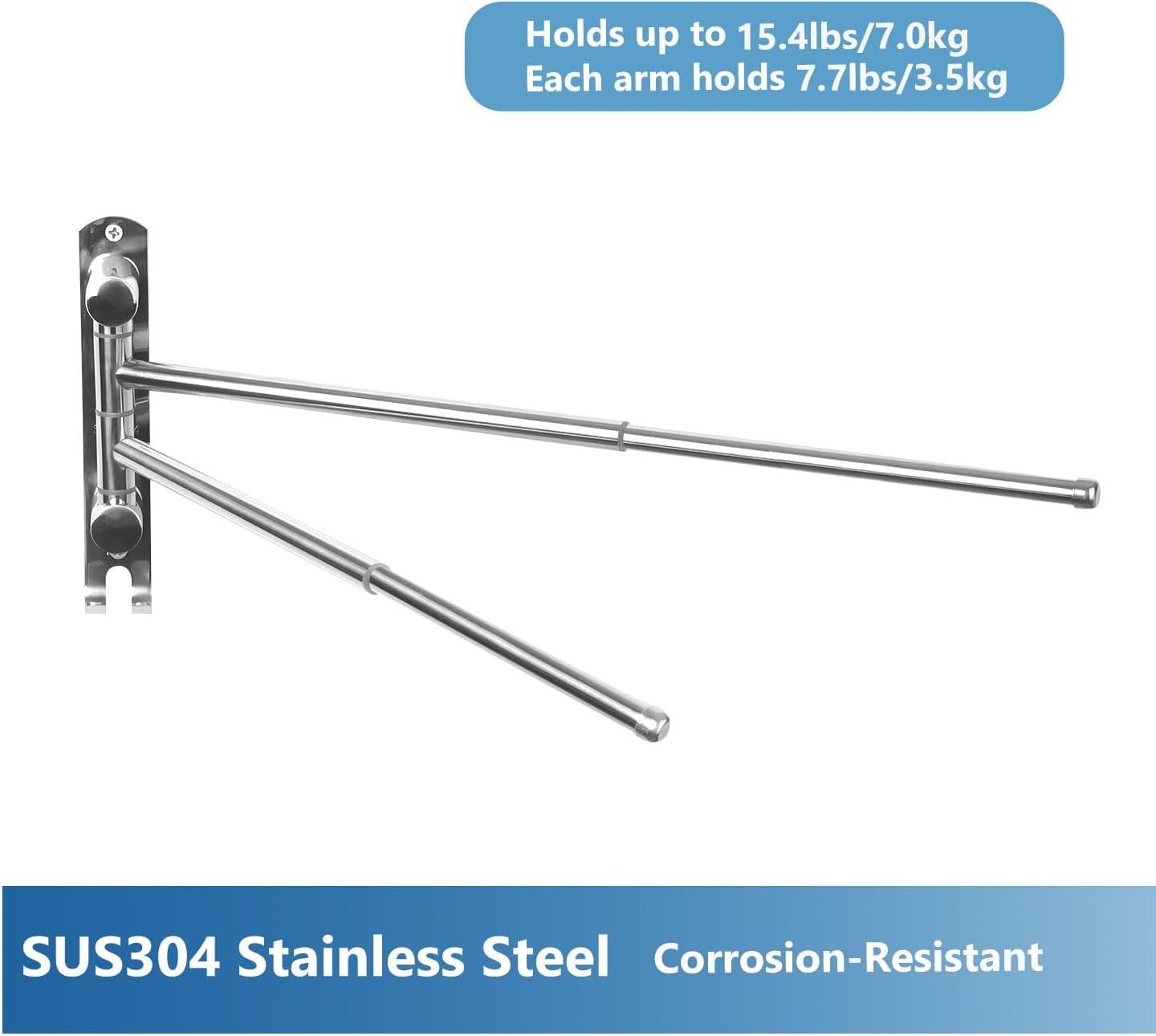 - Robust und langlebig – Der Handtuchhalter mit 2 Schwenkstangen ist aus rostfreiem SUS304-Stahl gefertigt, der korrosionsbeständig, langlebig und leicht zu reinigen ist. Hält bis zu 15,4 lb/7,0 kg. Jeder Arm hält bis zu 7,7 lb/3,5 kg.