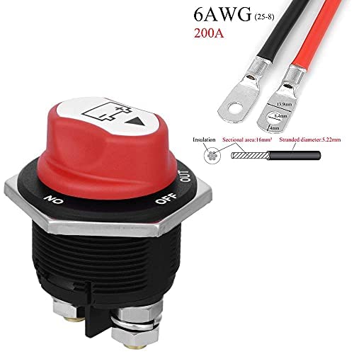 - Durable Use:Kompakte Grösse, schlankes modernes Aussehen, robust und langlebig,Installationsöffnung: 38 mm.Anschlussklemme: 6AWG (25-8), O-Steckverbinder Innendurchmesser: 8,4 mm, Aussendurchmesser 13,9 mm. Geeignet für M8-Schraubenbatterieschalter.