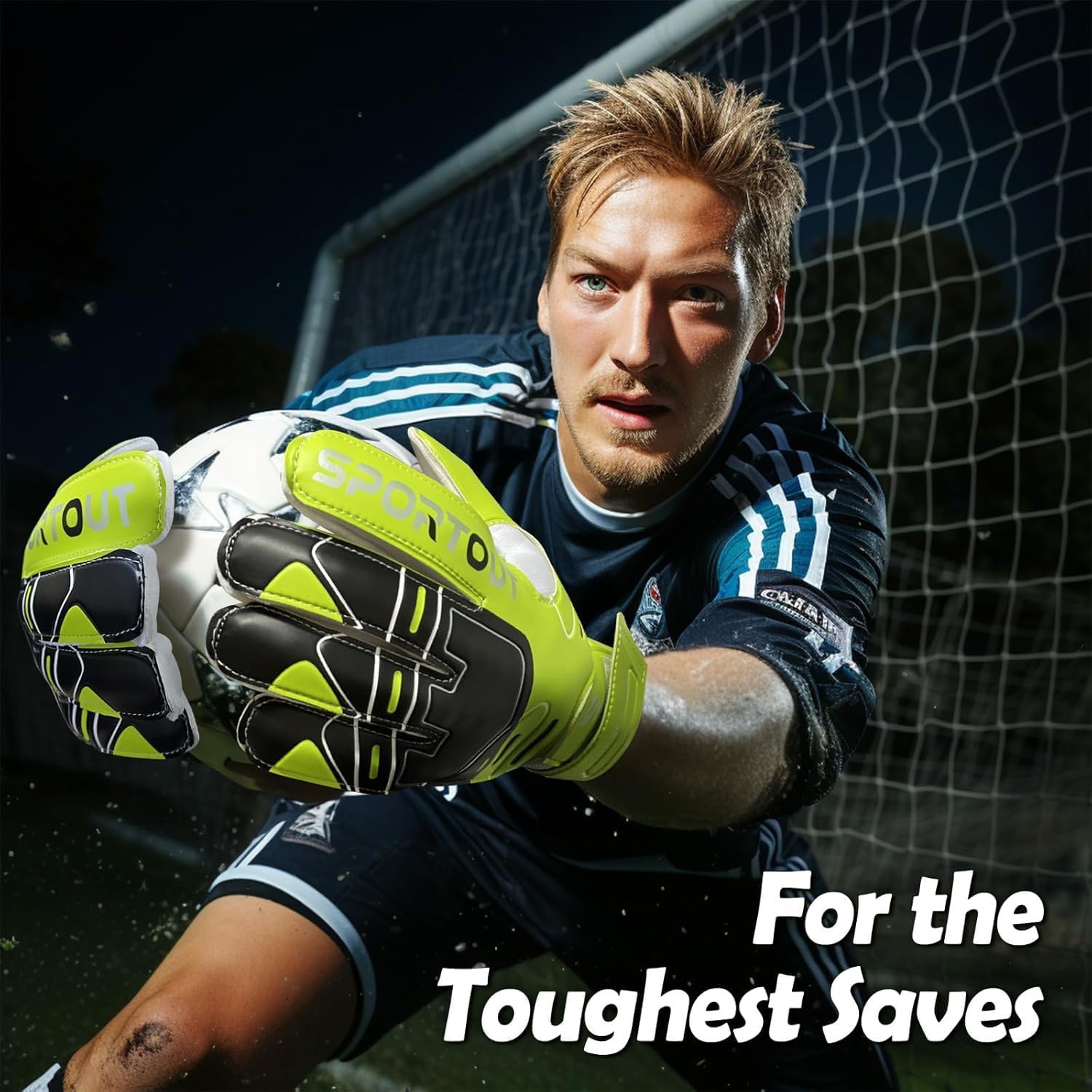 - SPORTOUT Torwarthandschuhe für KinderFussballhandschuheTorwarthandschuhe für Jugendliche und Erwachsene mit Fingerschutz und 4mm Latex zum Schutz vor Verletzungen (Grün9)