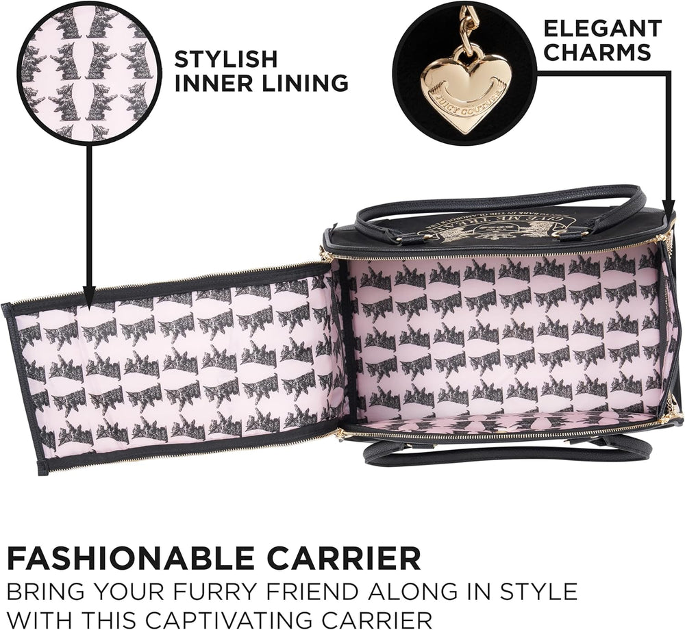 - Sicher mit Ihrem Haustier reisen: Unsere Juicy Couture Gib Me Treats Haustier-Tragetasche ermöglicht es Ihnen, Ihr entzückendes Haustier unterwegs mitzunehmen, um seinen Komfort und Sicherheit während der Reise zu gewährleisten