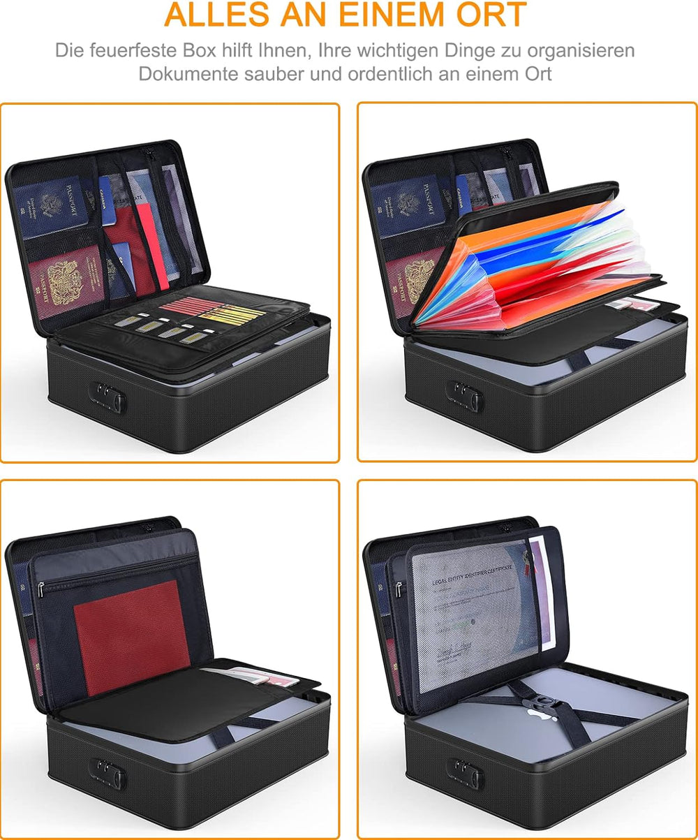 - Tragbare Aktenbox mit Schloss: Die sichere Dokumentenbox mit dreistelliger Passwortsperre, starkem Griff, integriertem elastischem Band und breiterem Riemengriff. Sie können es nicht nur in Ihrem Zuhause, Büro, Auto, Safe, Lagerschrank verstauen,