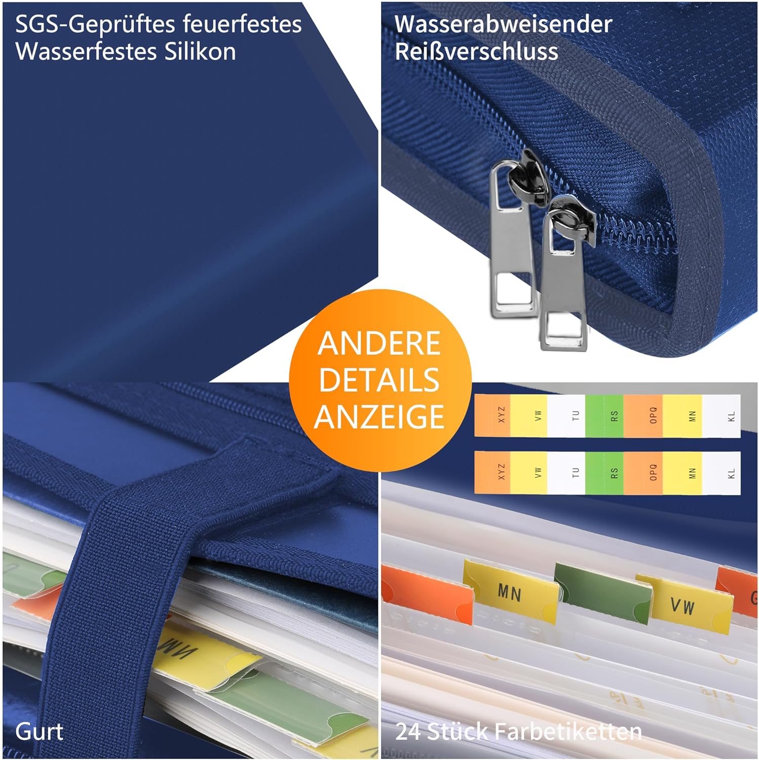 - HOCHWERTIGE MATERIALIEN: Schützen Sie Ihre Dokumente mit unserer feuerfesten fächermappe A4.Hergestellt aus doppellagigem,nicht juckendem, silikonbeschichtetem Fiberglas, hält bis zu 2000 °F stand und hat den SGS-Test (UL94 VTM-0-zertifiziert)