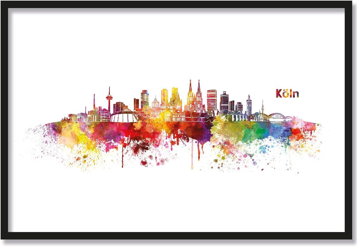 Variante: L mit Rahmen Natur | 40x60 cm Aquarell Skyline Köln