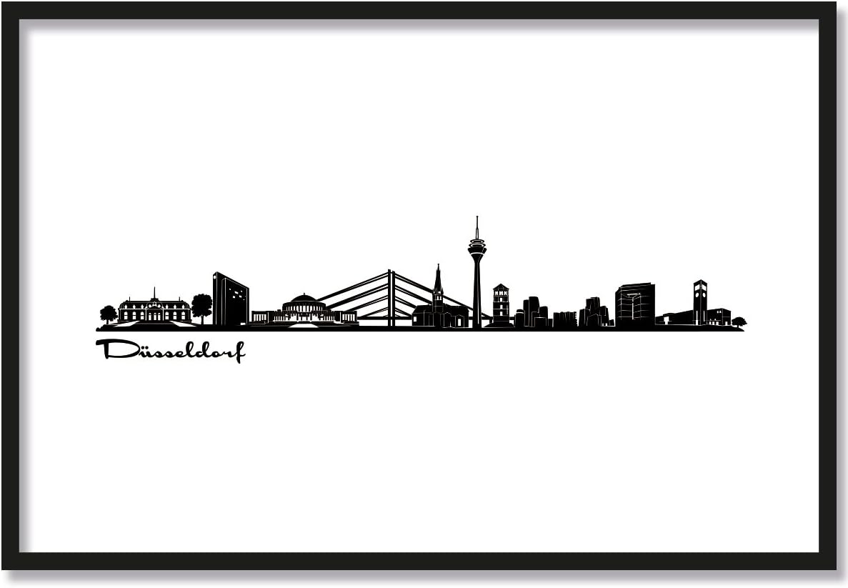JUNIWORDS Poster mit/ohne Holzrahmen, Wähle ein Motiv, Skyline Düsseldorf, Wähle eine Grösse, 30 x 4