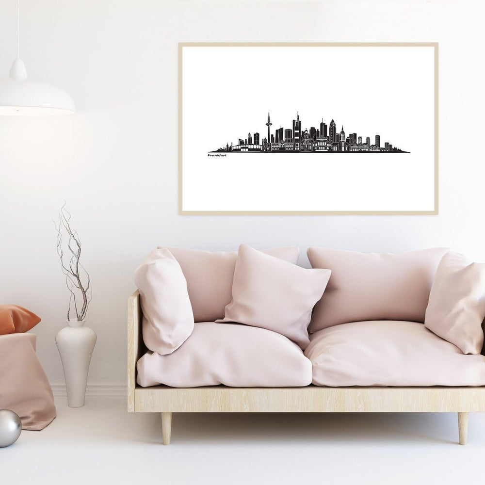 Variante: L mit Rahmen Natur | 40x60 cm Skyline Frankfurt