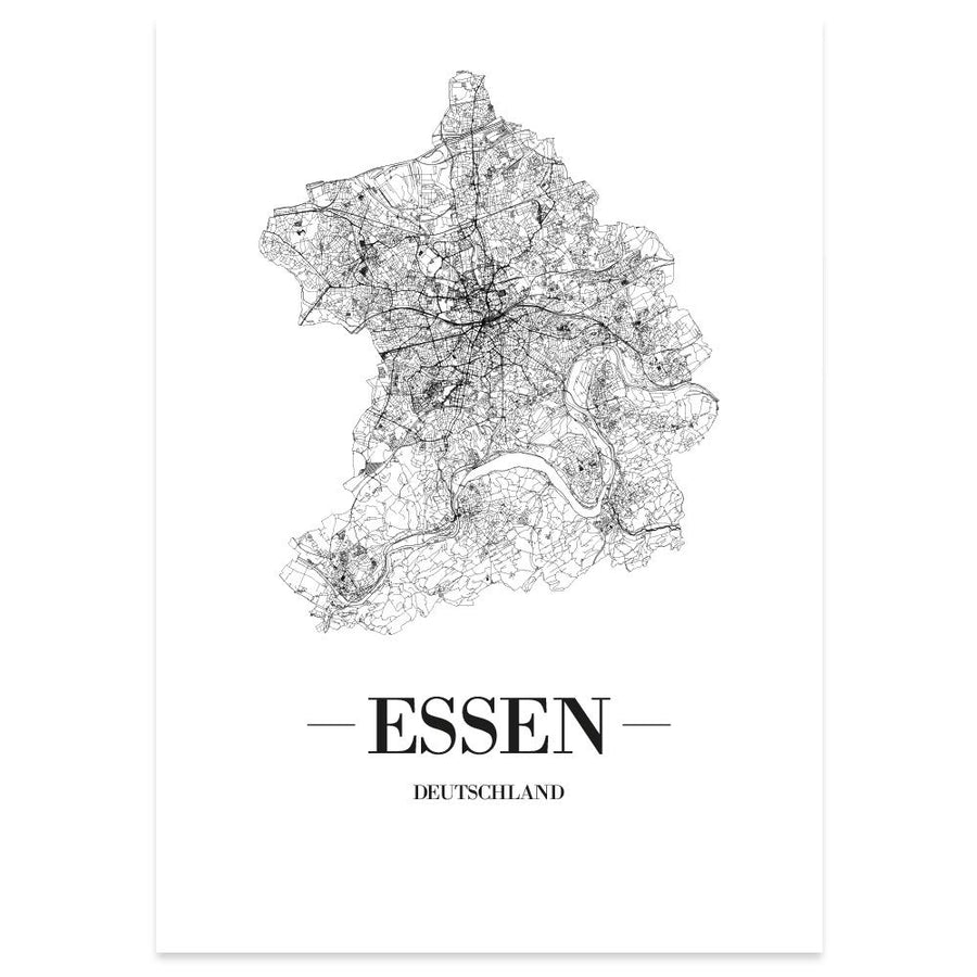 - JUNIWORDS Stadtplan Essen (Schrift A) in der Grösse 40 x 60 cm auf weissem Hintergrund.