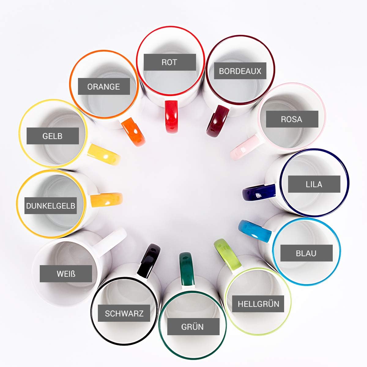 - Beidseitig bedruckte Keramiktasse mit farbigen Henkel & Trinkrand. Wählen Sie aus tollen Farben Ihre Wunschfarbe.