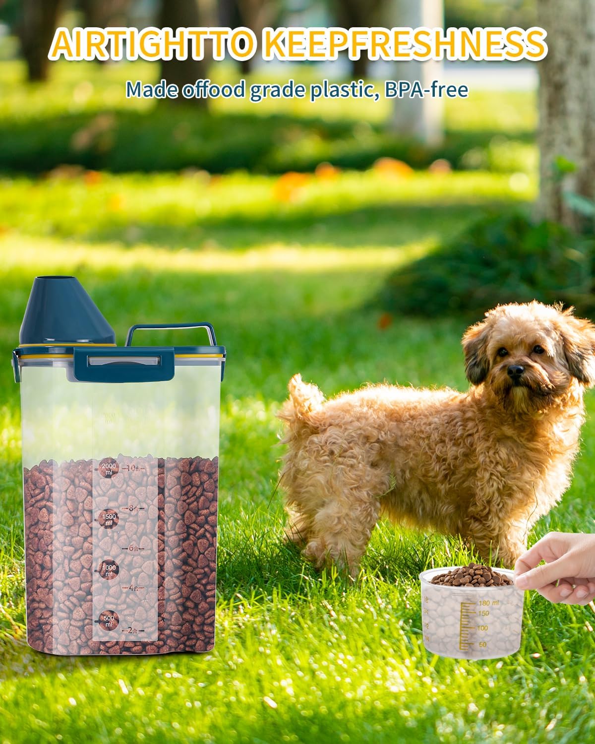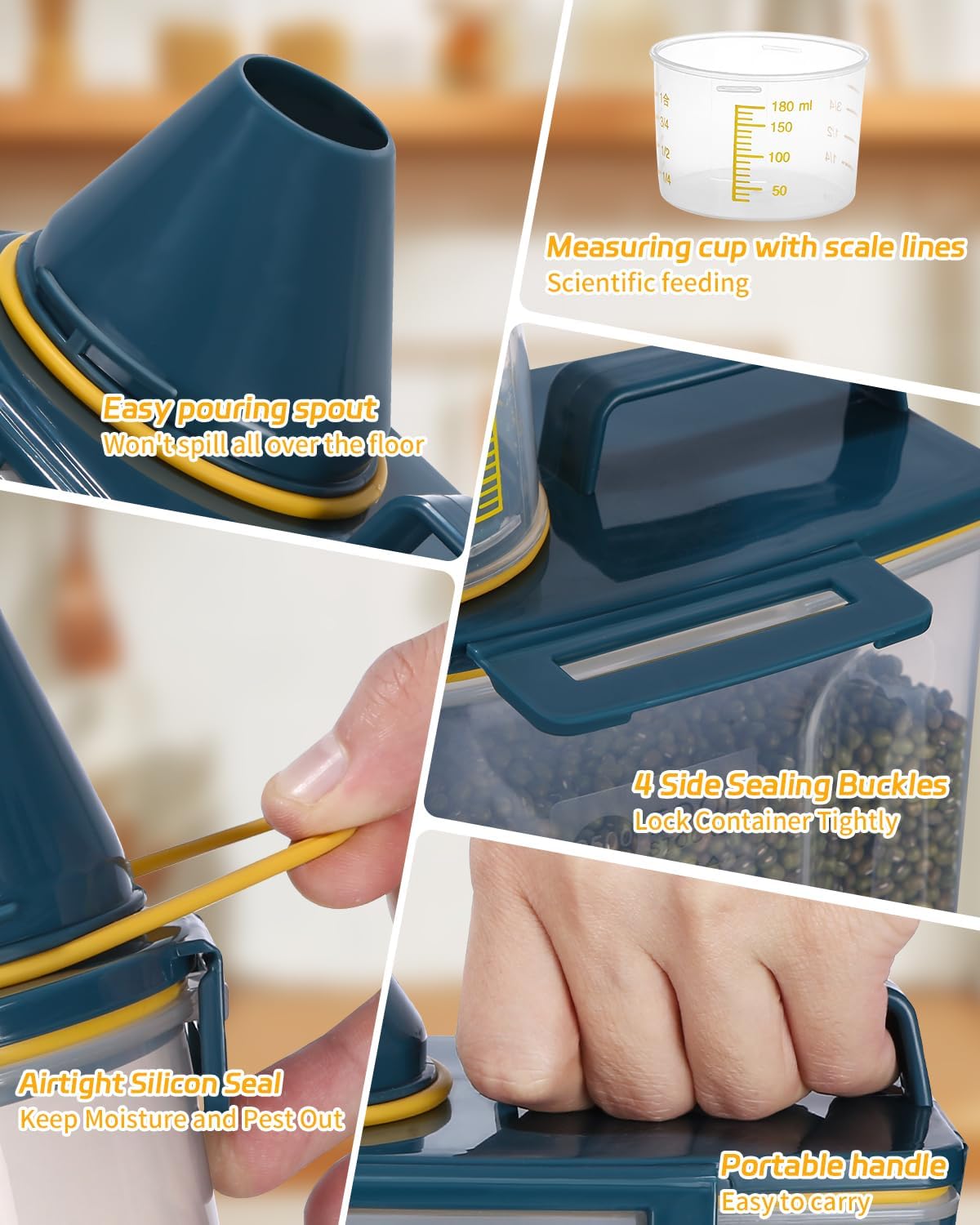 - 【Intelligentes Design und bequeme Handhabung】: Das Hundefutter Aufbewahrung Ausguss-Design erleichtert das Entnehmen von Lebensmitteln und ermöglicht ein präzises Einfüllen in die Schüssel des Haustieres, um Verschwendung zu vermeiden und den