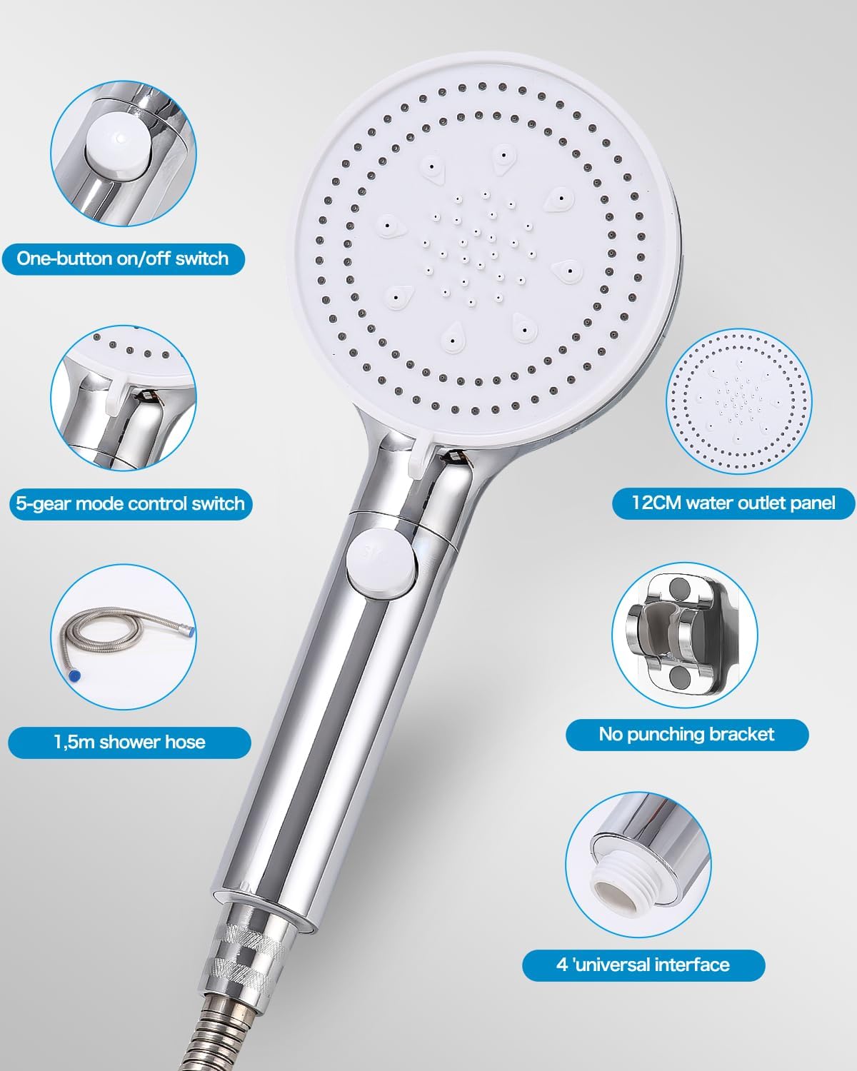 - 【Professionelle Duschkopf mit Schlauch】: Unser wassersparender Brausekopf ist ein Meisterwerk fortschrittlicher interner Durchflusssperrtechnologie. Mit einem einzigen Knopfdruck lässt sich der Wasserfluss mühelos und effizient stoppen. Diese