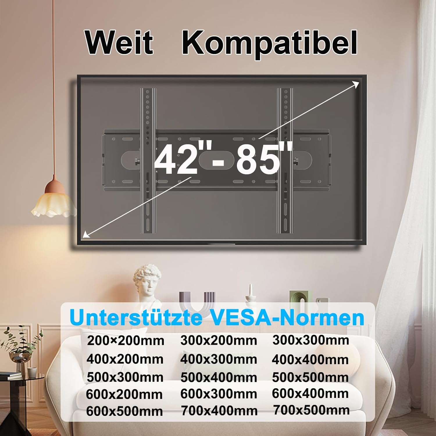 - 𝗘𝗠𝗣𝗙𝗢𝗛𝗟𝗘𝗡 𝗙Ü𝗥: Geeignet für 42-85 Zoll Flach & Curved TV bis zu 85kg. Robuste und sichere Anwendung - Keine Sorge, Ihr Fernseher ist in sicheren Händen.