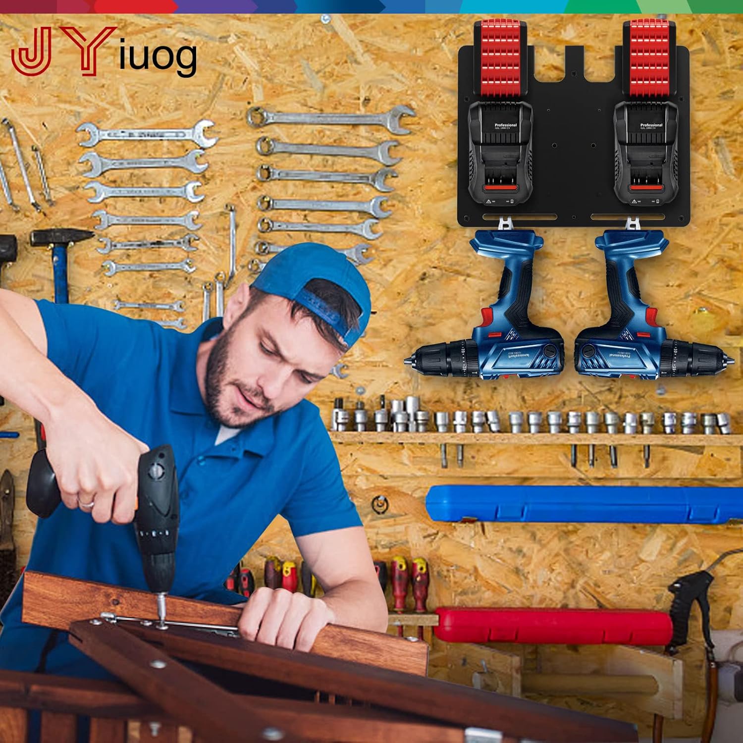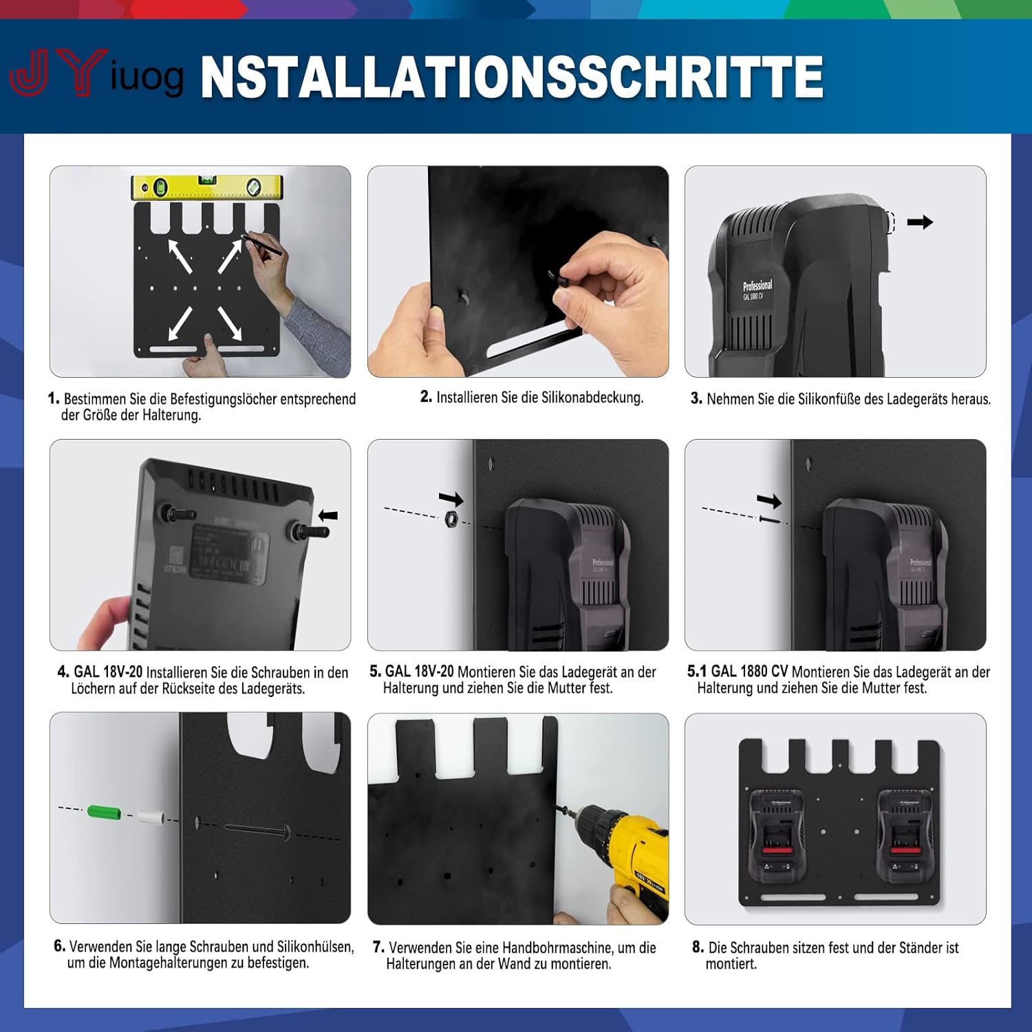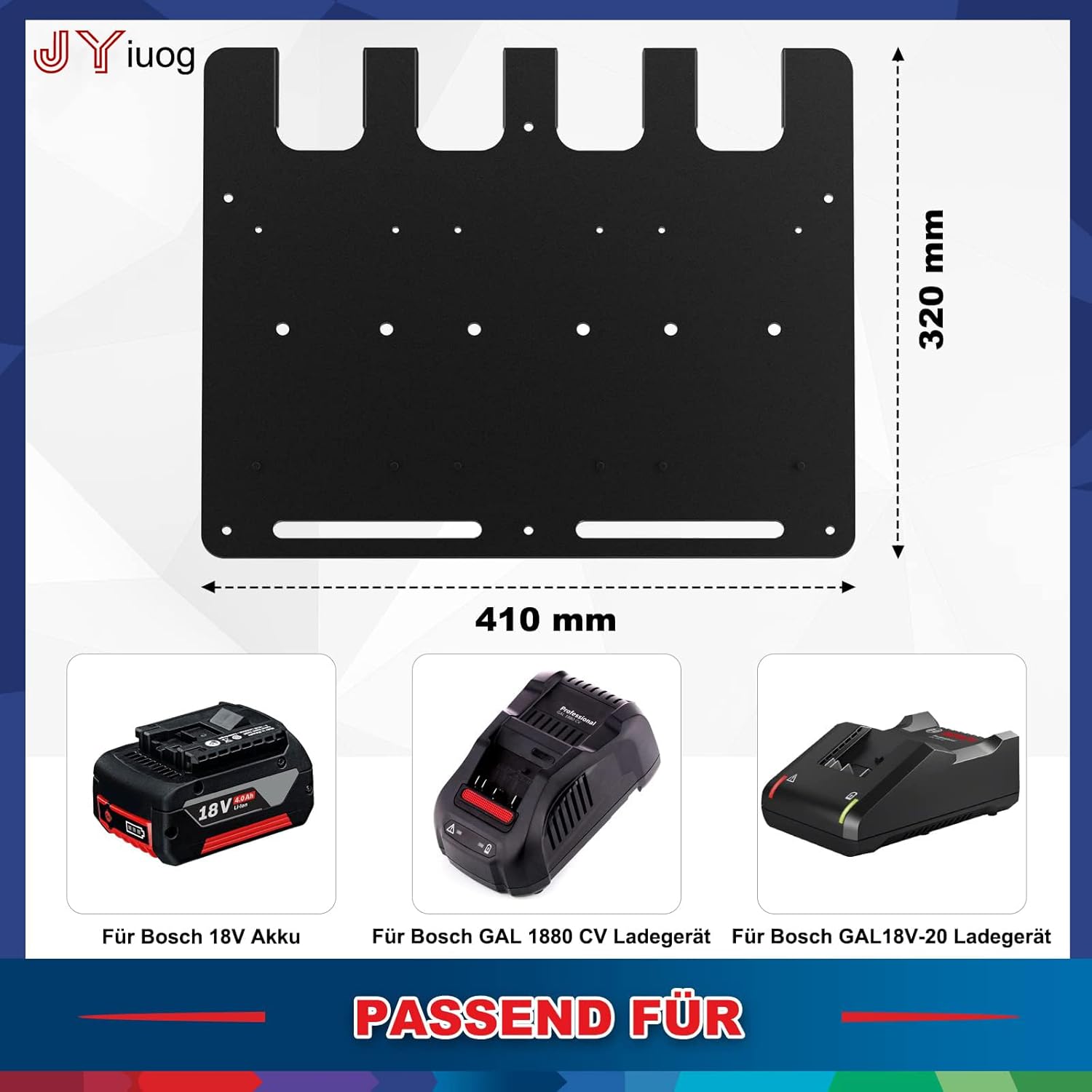 - 【Einfach zu bedienen】 Die Halterung kann bis zu 3 GAL 1880 CV-Ladegeräte oder 3 GAL 18V-20-Ladegeräte, 4 Akkus und 2 Akku-Bohrschrauber aufnehmen. Akkus können von oben in die passgenauen Rillen geschoben und fest fixiert werden.