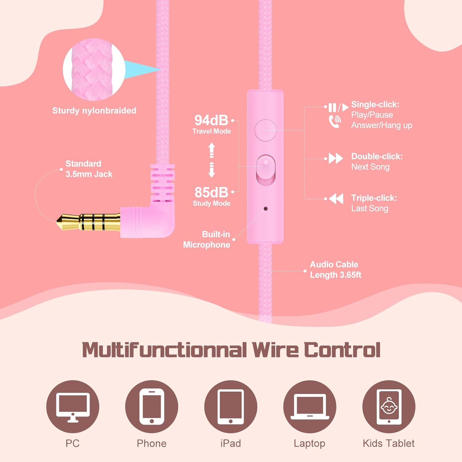 - 【❤3.5mm Jack Port und eingebautes Mikrofon:】 Die Kinder Kopfhörer, die wir für Mädchen zur Verfügung stellen, kommen mit einem Mikrofon, geeignet für Online-Unterricht, Sprachanrufe, Spiele spielen, Fernsehen, Reisen und vieles mehr. Der