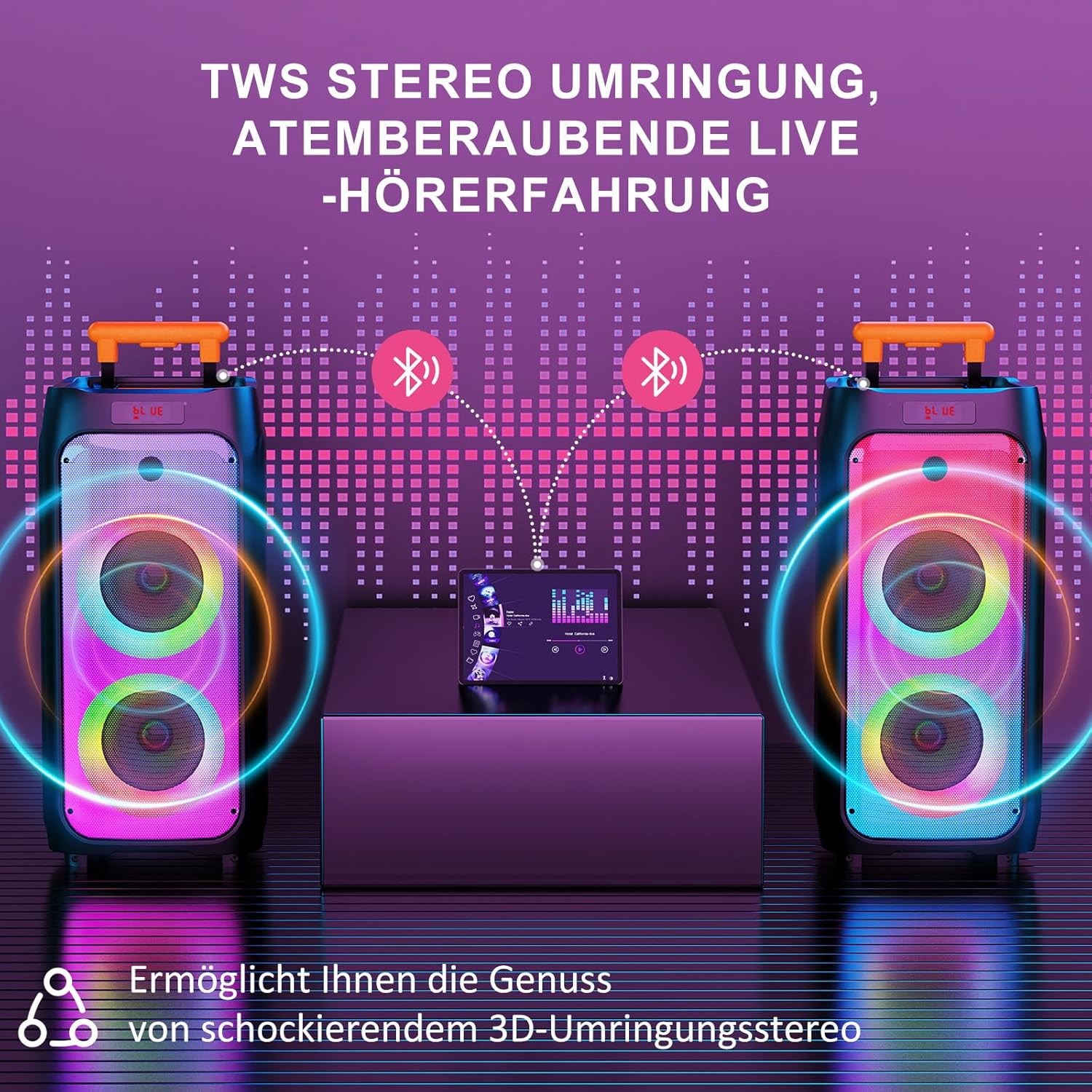 - 【IPX4 Spritzwassergeschützter Lautsprecher mit RGB-Lichtern】DJ-Lichter verwandeln jeden Raum in ein Rockkonzert, Nachtclub und Karaoke-Raum. IPX4 spritzwassergeschütztes Design, ob Sie sich mit Freunden auf der Terrasse treffen oder am Pool trinken, machen Sie sich keine Sorgen, dass Ihre Stereoanlage nass wird.