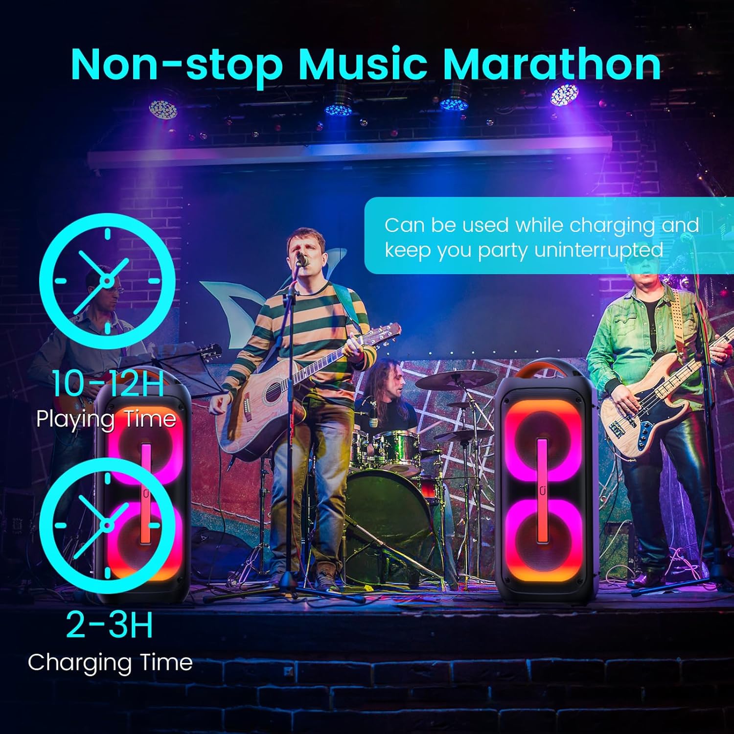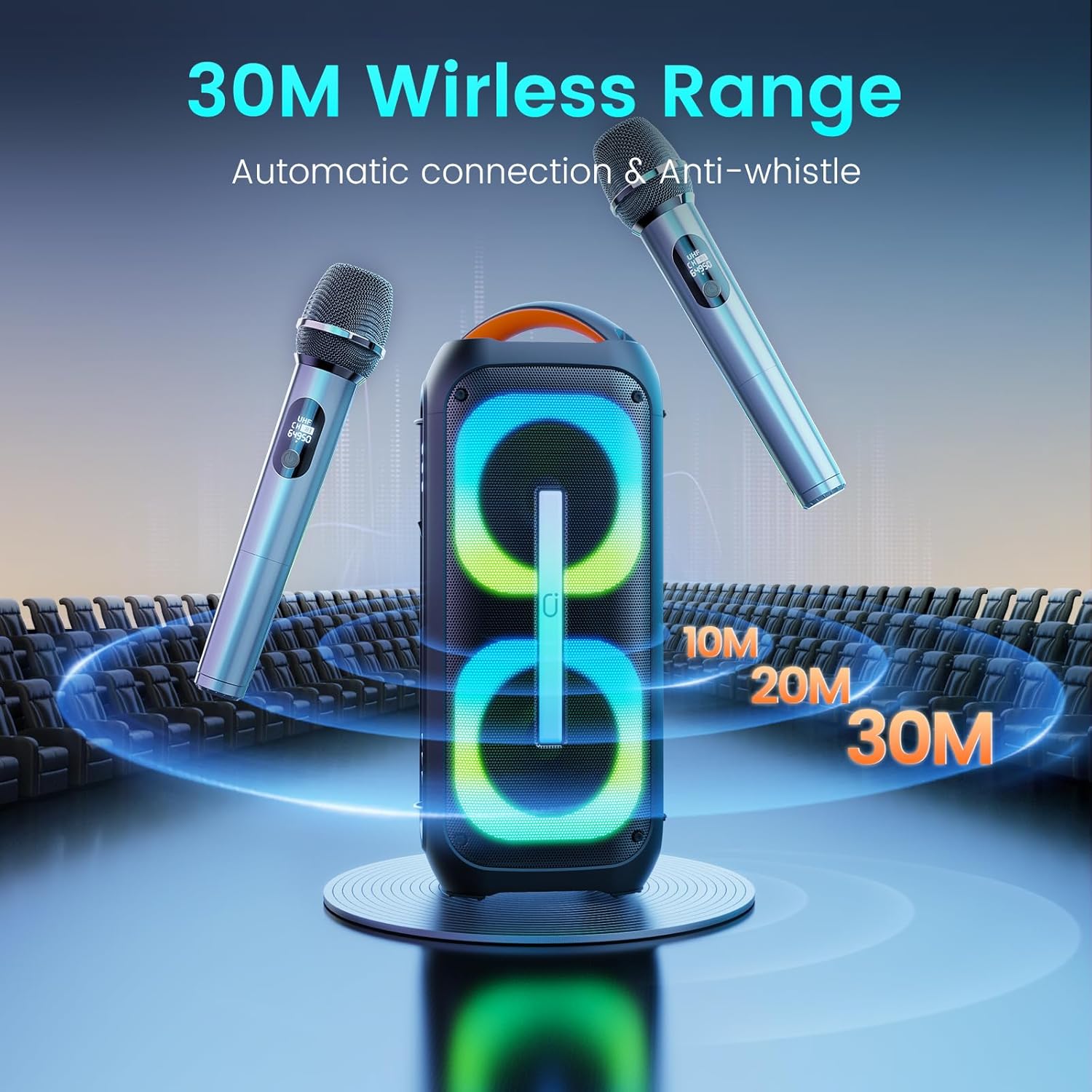 JYX Karaoke Anlage mit 2 drahtlosen Mikrofonen, Grosser Lautsprecher Bluetooth mit Rädern und Disco