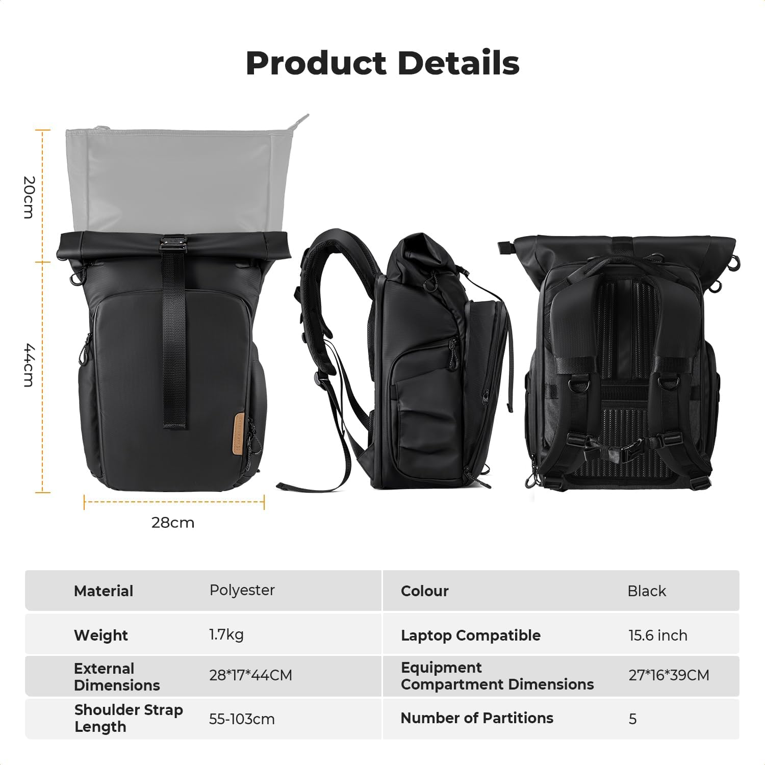 - 【Ihr All-in-One-Fotorucksack】Unser 20L Kamerarucksack (ca. 44x28x17 cm) schützt Ihre Ausrüstung (Kamera + Objektive) durch flexible Innenteiler. Egal ob Beruf, Reise oder Outdoor – dieser Fotorucksack ist Ihr vielseitiger Begleiter. (Manuell