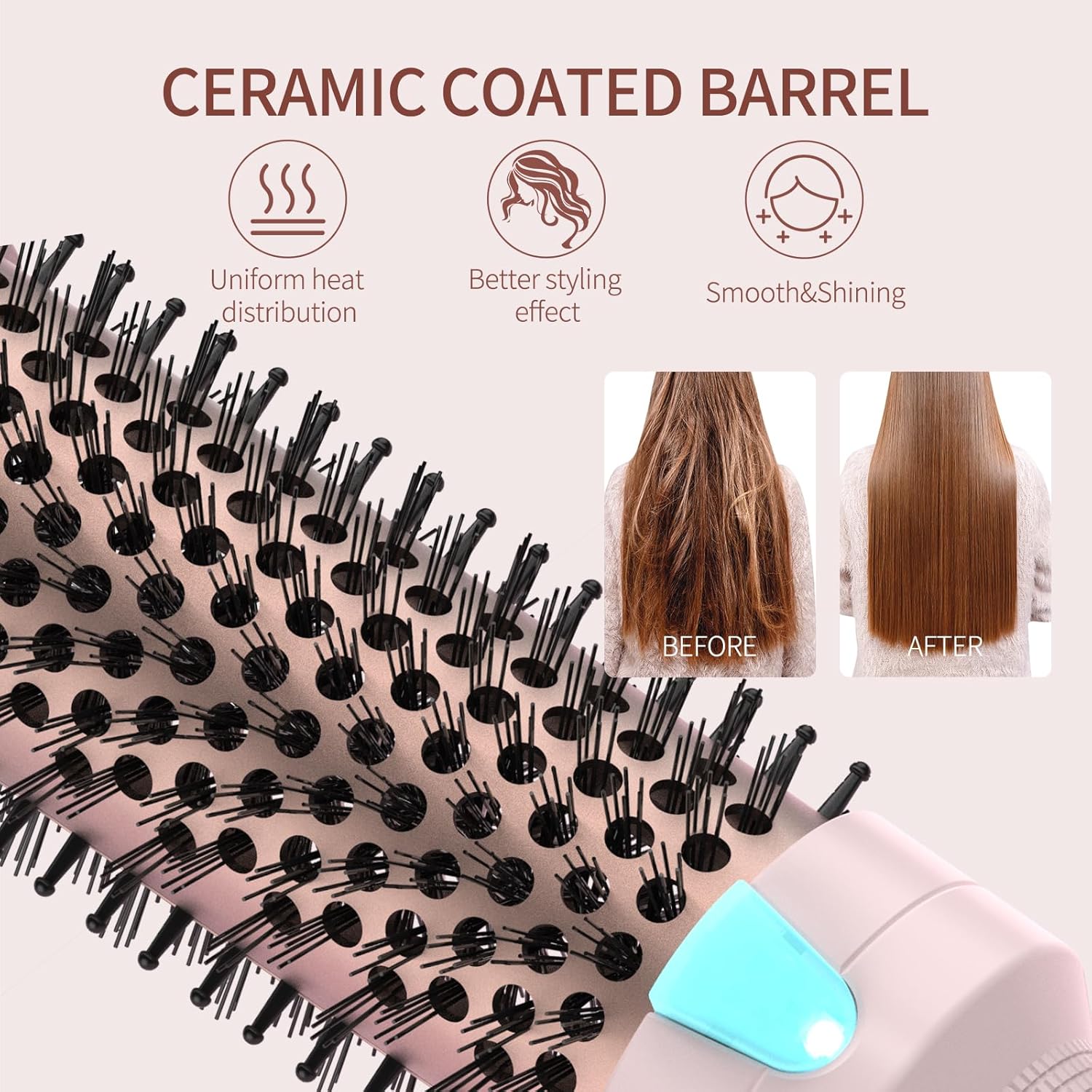 - Design des runden Bürstenkopfs: Verfügt über verbrühungshemmende Nylonborsten und eine kühle Spitze. Gummierter Griff für bequemeren und sicheren Halt. Kein Brennen mehr durch das Haareisen. Automatische Abschaltung nach 60 Minuten bei