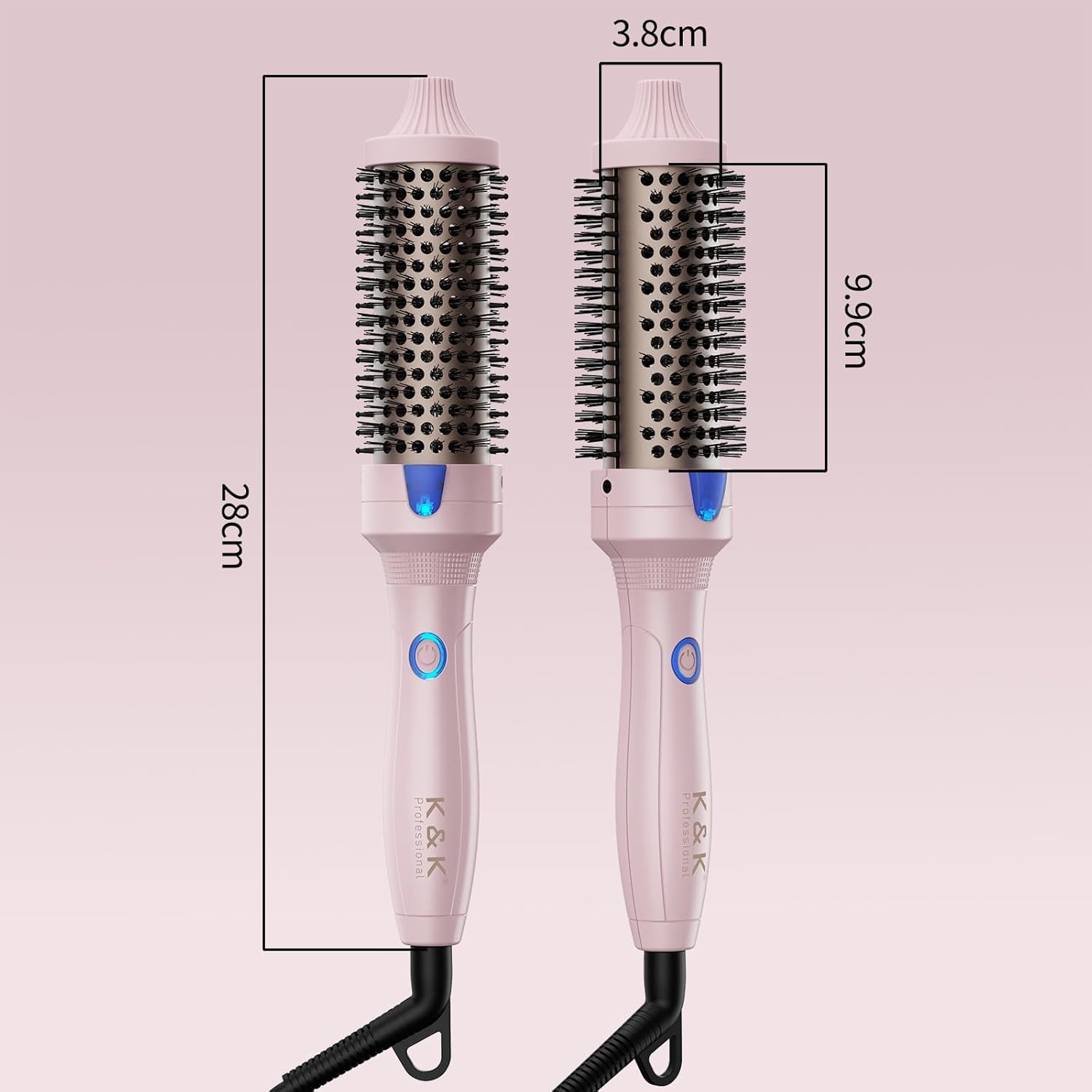 - K&K Ionic Hot Curl Brush: Diese Bürste verfügt über eine Super-Ionen-Generierung, um statische Aufladung zu beseitigen und Frizz zu bändigen, und ihr rotgoldener Titanschaft in 3 Grössen mit Nylonborsten ist ideal für die Kreation weicher, seidiger