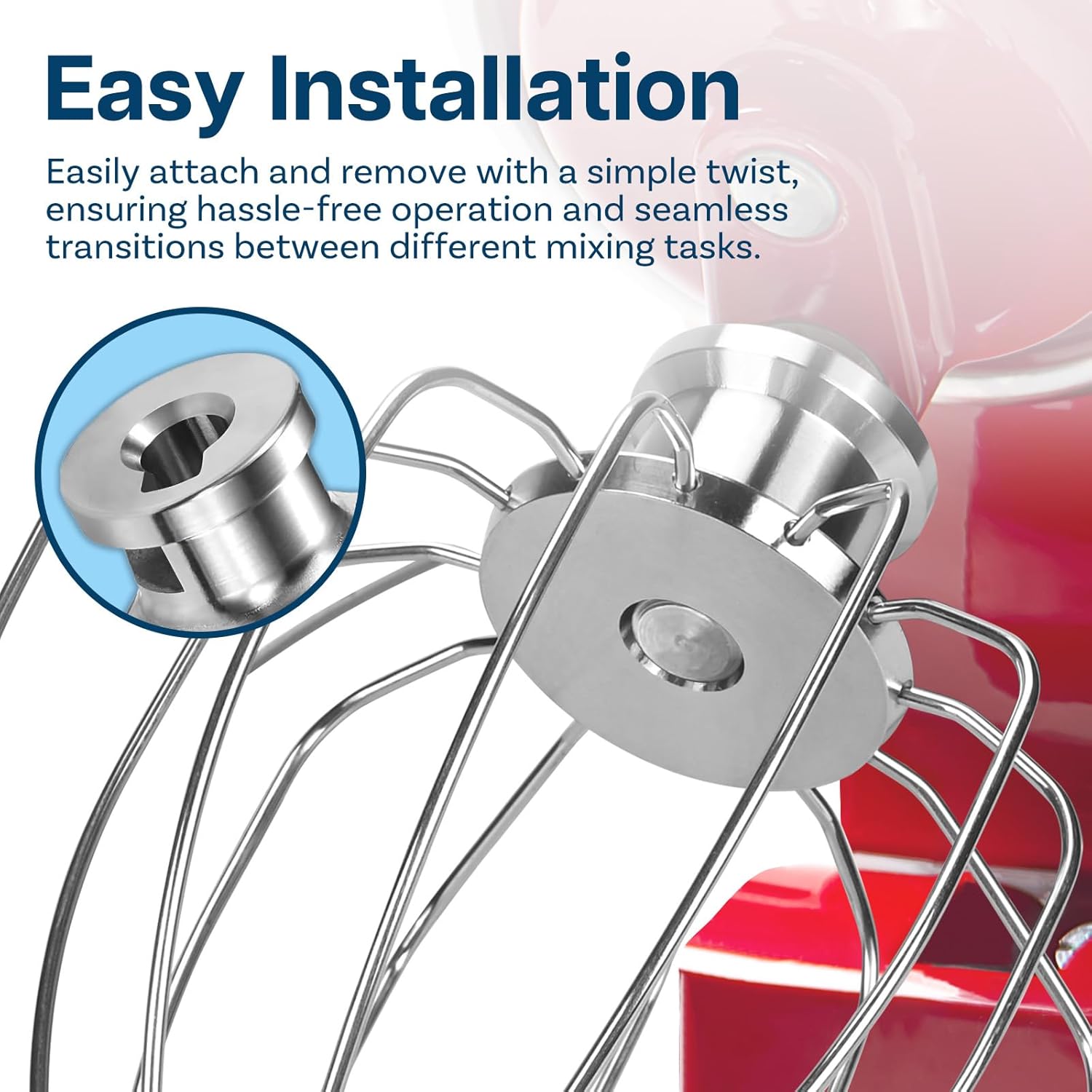 - Schnelle und Einfache Installation - Das Anbringen und Abnehmen ist mit einer einfachen Drehung möglich. Der Schneebesen ist kompatibel mit KitchenAid-Standmixern mit kippbarem Kopf und ermöglicht mühelosen Betrieb sowie nahtlose Übergänge zwischen