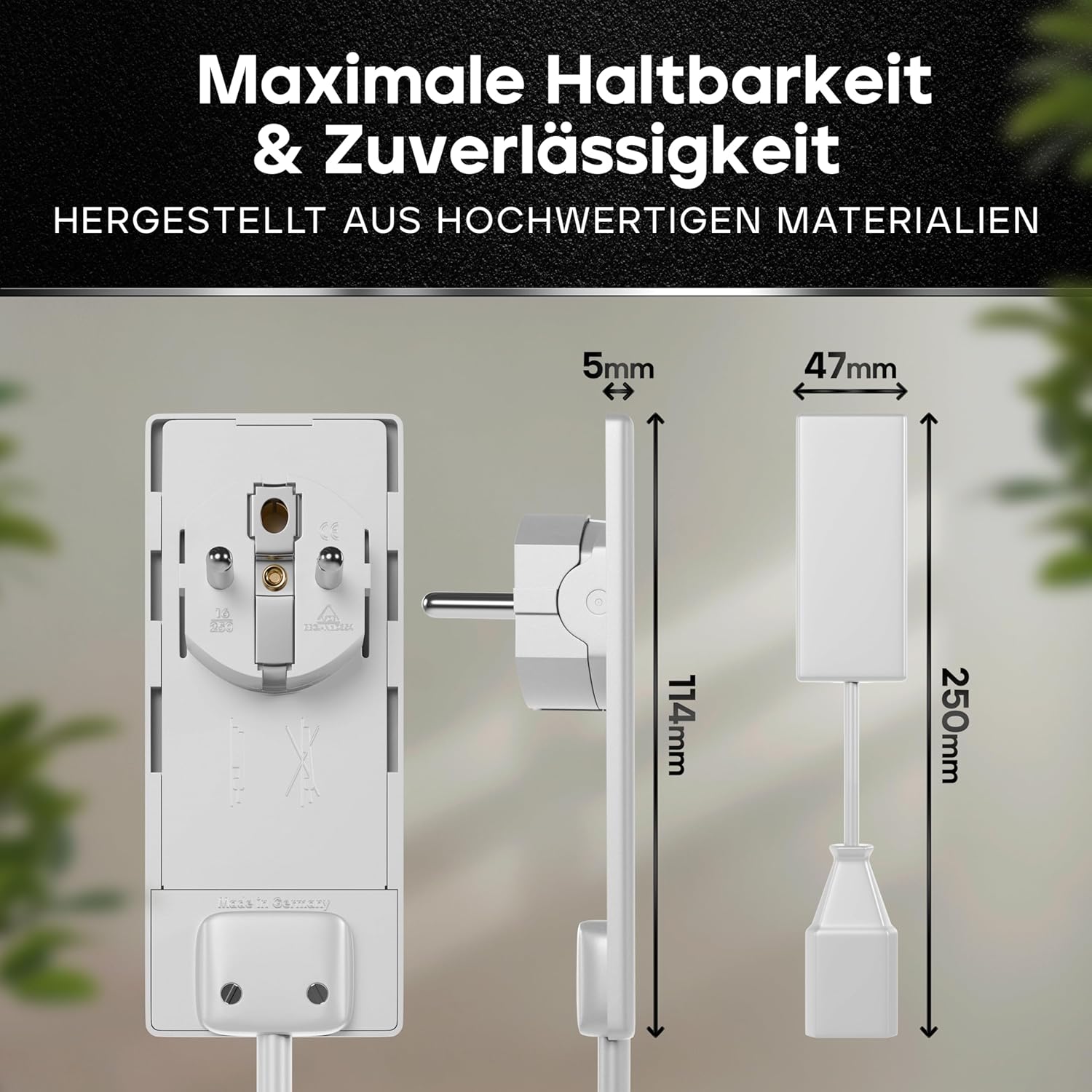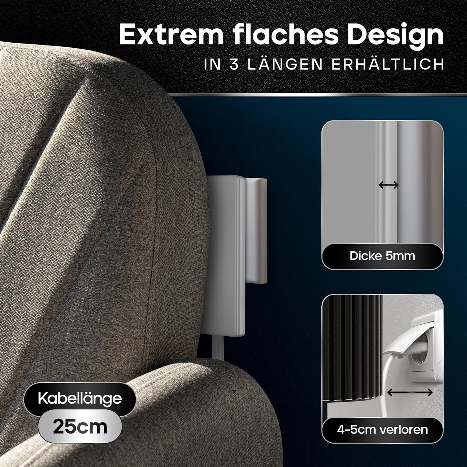- ✅ 𝐄𝐈𝐍𝐙𝐈𝐆𝐀𝐑𝐓𝐈𝐆 - Das wohl einzige Verlängerungskabel Flachstecker, welches nur 5mm Platz hinter der Steckdose benötigt!