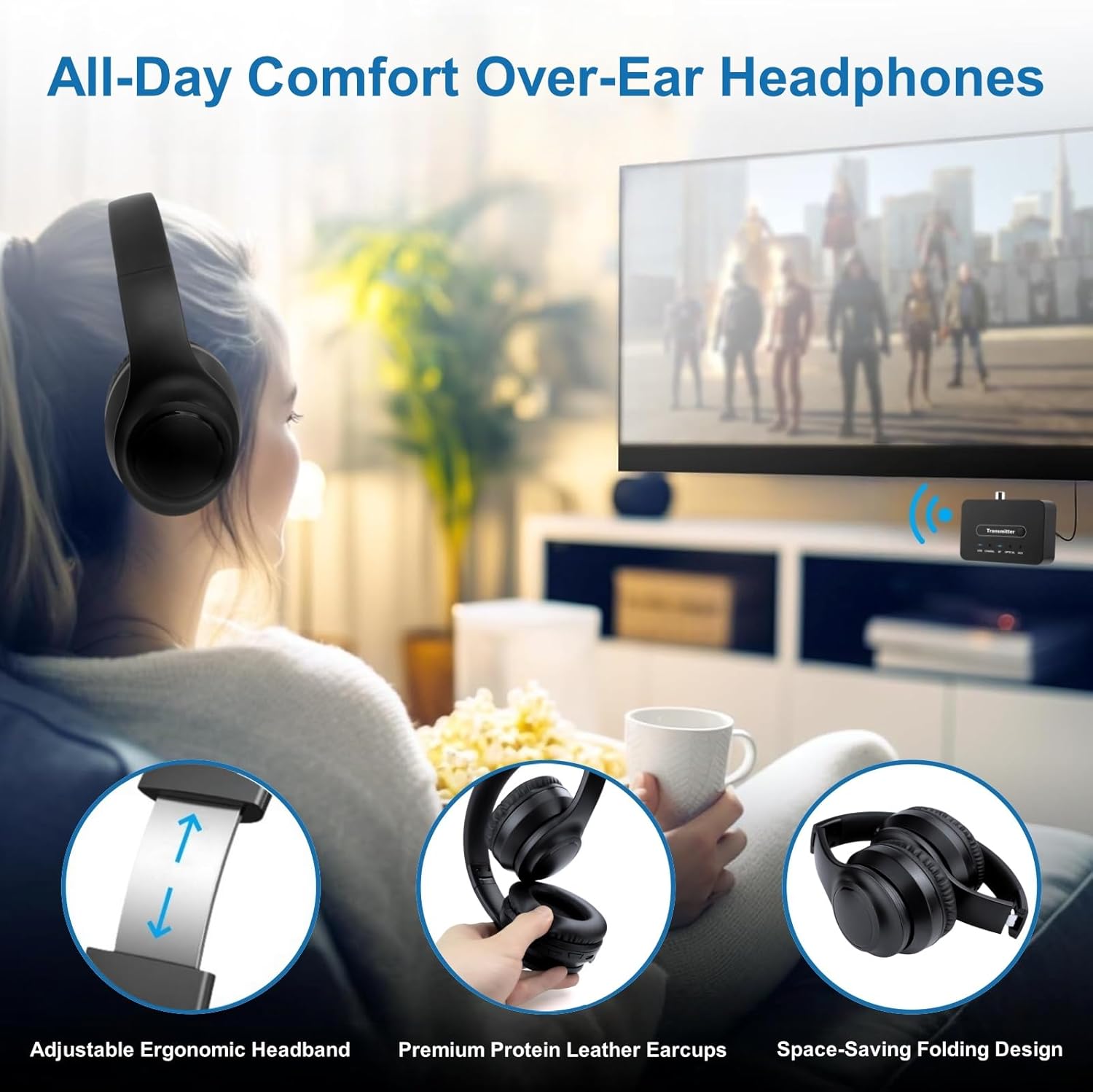 - 【Niedrige Latenz & Immersives TV-Erlebnis für Senioren】Mit integriertem Audioverstärker liefern diese drahtlosen TV-Kopfhörer Hi-Fi Stereo-Sound für packende Live-Sportevents, Filme und Shows – ohne schlafende Kinder oder arbeitende