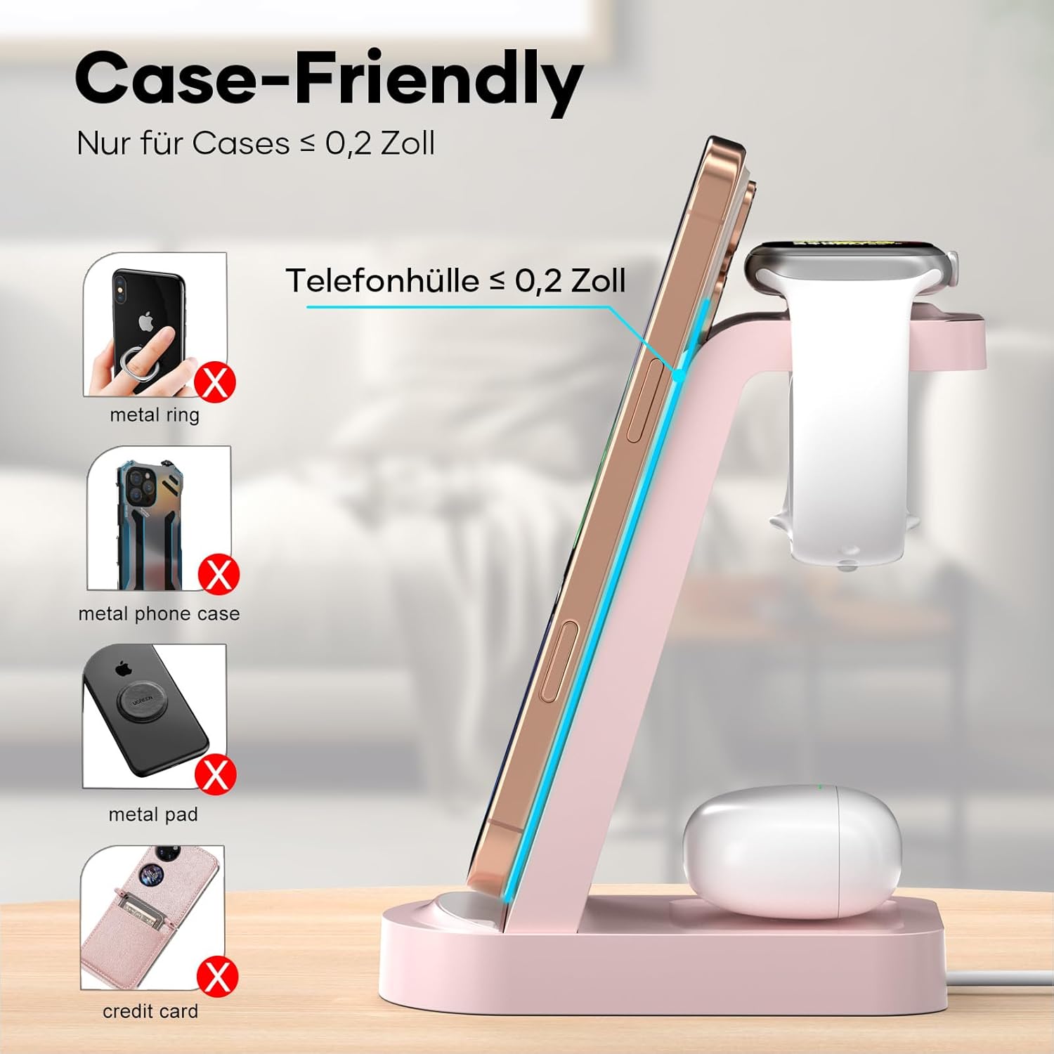 - Universelle Kompatibilität:Die 3-in-1-Ladestation ist weitgehend kompatibel mit iPhone 16/iPhone 16 Pro/iPhone 16 Pro Max/iPhone 16 Plus/iPhone 15/15 Pro/15 Pro Max/15 Plus/iPhone 14/14 Pro/14 Pro Max/14 Plus/iPhone 13/13 Pro Max/iPhone 12/12 Pro Max/11