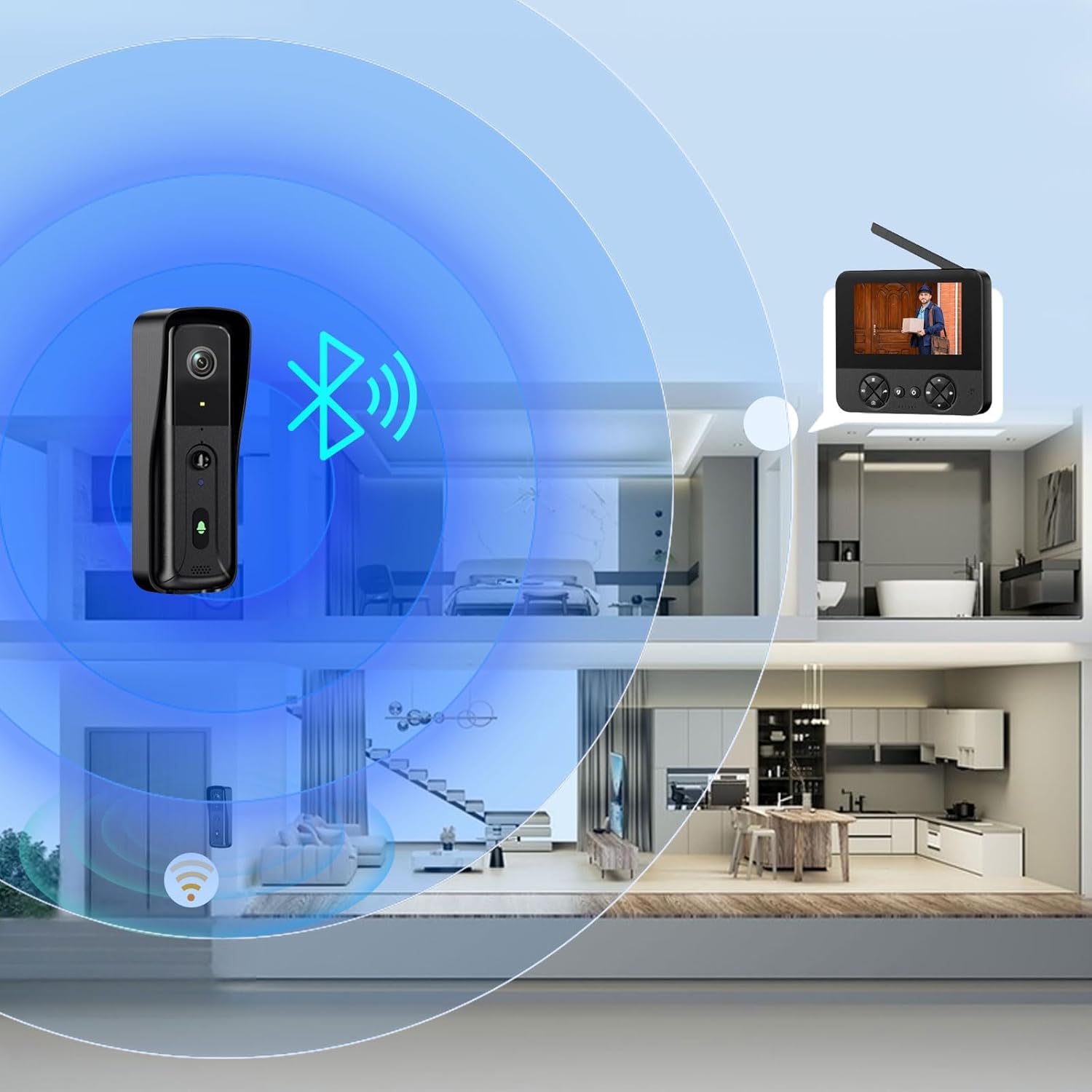 - 【Automatische Foto-/Videoaufnahme】Diese Video-Türklingel klingel mit monitor besteht aus feuerfestem ABS+PC-Material und ist langlebig. Die kabellose Türklingel verfügt über einen 4,3-Zoll-IPS-Bildschirm, der sicher und komfortabel ist. Die