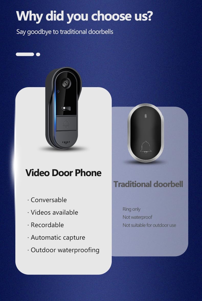- Einfache und bequeme Installation: Die kabellose Türklingel von TKMARS mit 1080P-Kamera erfordert keine Anwendung oder Internetverbindung. Dank der 2,4G-Bluetooth-Technologie lässt sich das Gerät mit nur einem Klick koppeln und ermöglicht so eine