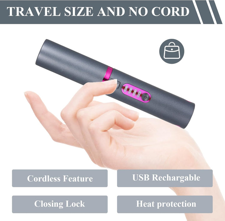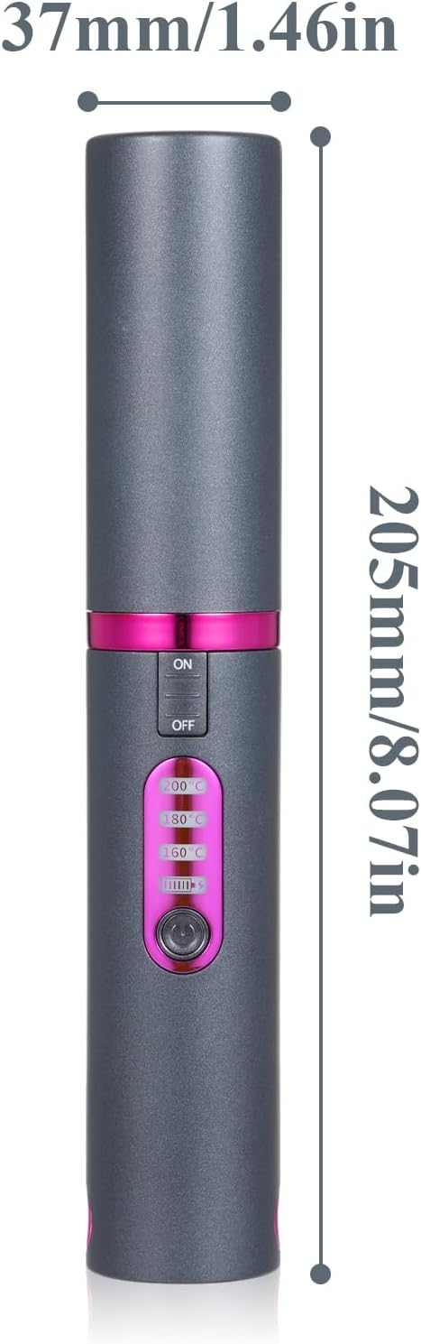 - ❤【Tragbares Design】:Dieser Kabelloser Haarglätter und Lockenstab ist für einfache Portabilität konzipiert, als ein kleiner Lockenstab, die Körpergrösse ist 20cm x 3,7cm, mit einem Sicherheitsschloss, schnappen Sie den Deckel, um den Strom