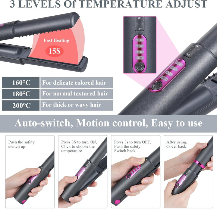 - ❤【Bestes Geschenk】:Es kann als Geschenk zum Muttertag verwendet werden. Wenn Sie sich noch Gedanken darüber machen, was Sie verschenken sollen, ist der kabellose Haarglätter eine gute Wahl und ein perfektes Geschenk für Ihre Lieben! Wenn Sie