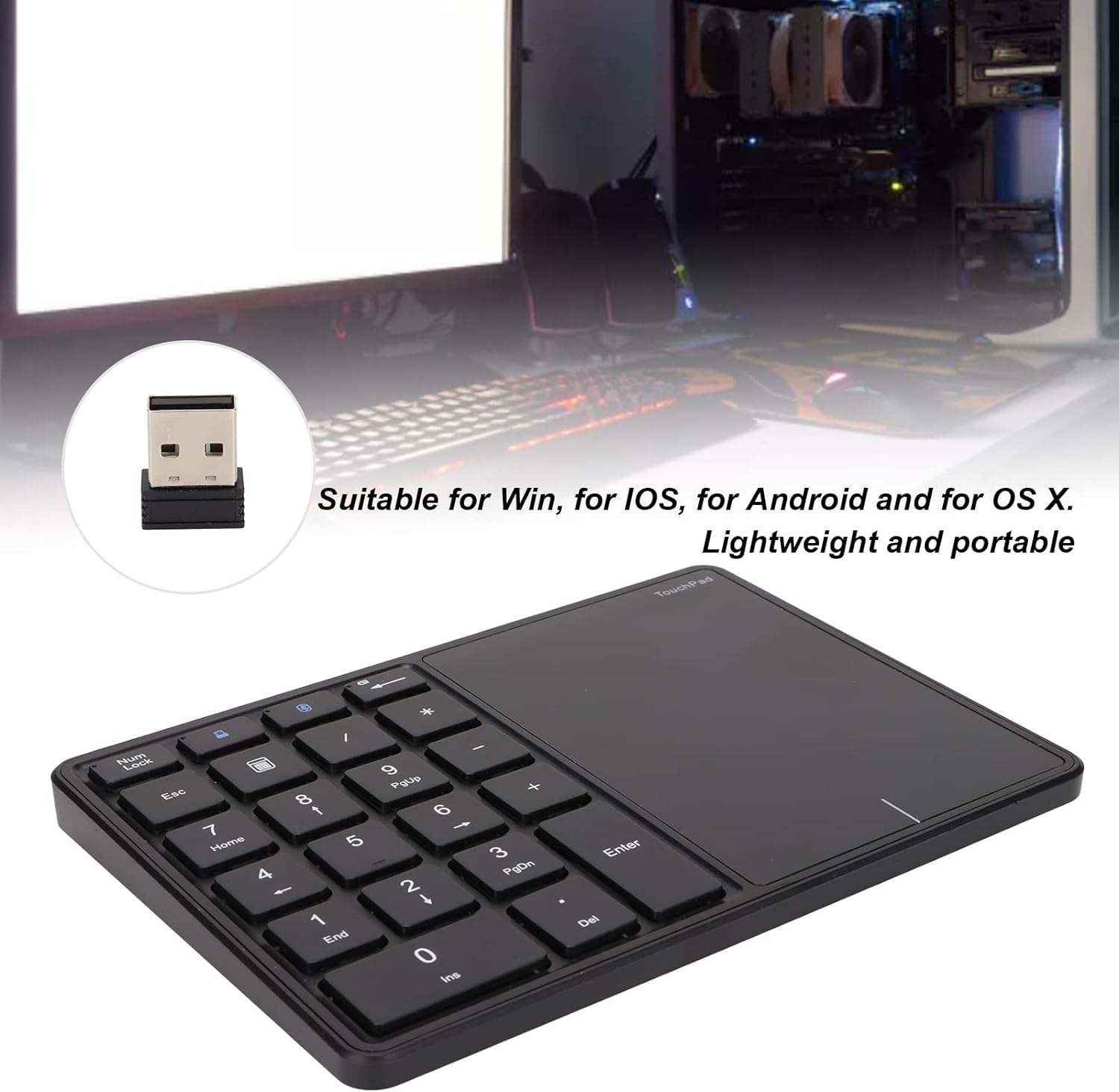 - WEITGEHEND KOMPATIBEL: Diese drahtlose numerische Tastatur mit Touchpad ist geeignet für Win, für IOS, für Android und für OS X. Halten Sie eine stabile Verbindung und bietet eine schnelle Reaktion auf Geräte innerhalb von 10 Metern des Betriebs.
