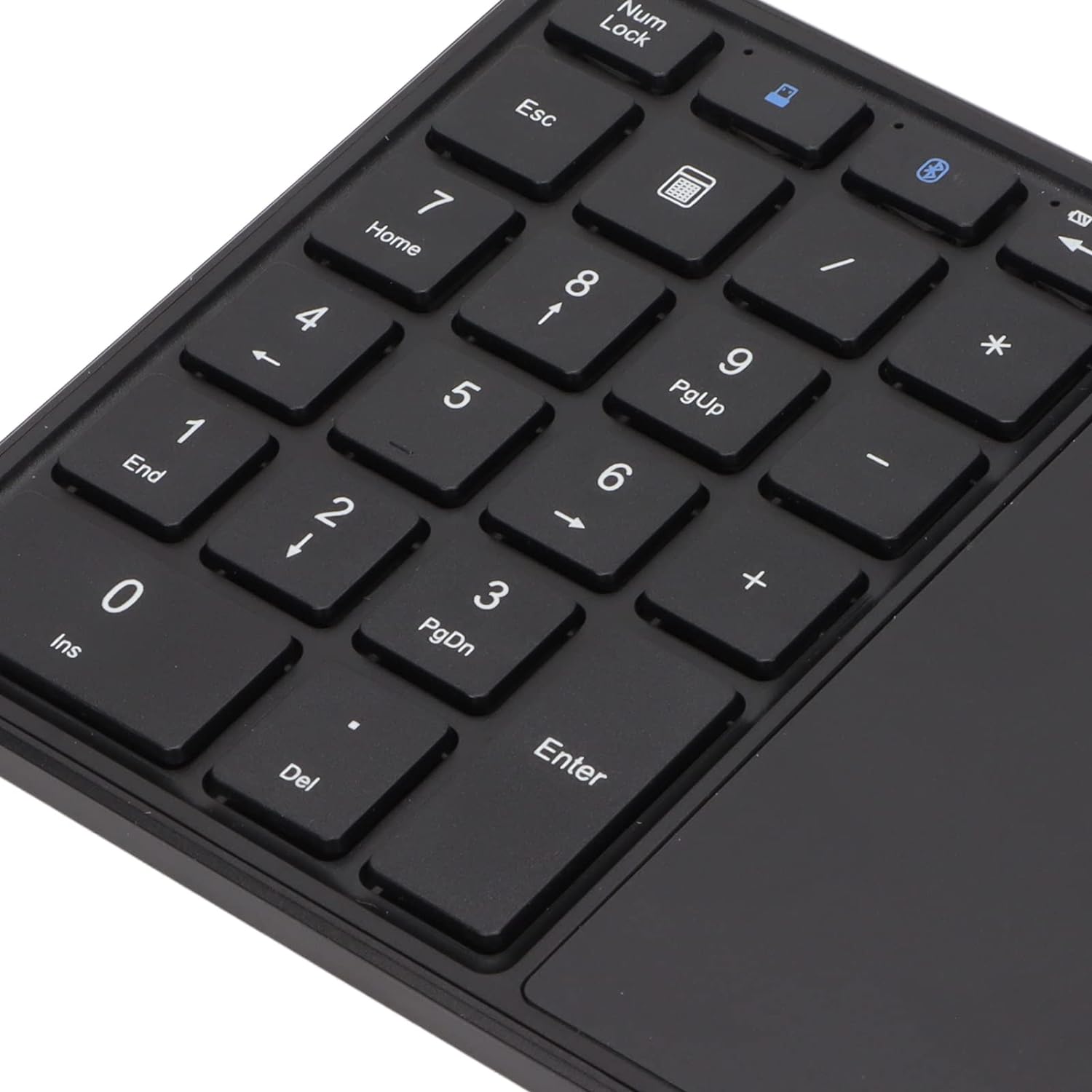 - 22 TASTEN BLUETOOTH NUMBER PAD:Diese drahtlose numerische Tastatur mit Touchpad nimmt BT und 2.4G Verbindung, die schnelle Verbindung gewährleistet.Die ergonomische Neigung, komfortable Eingabe präzise Steuerung, gute Elastizität schnelle Reaktion und