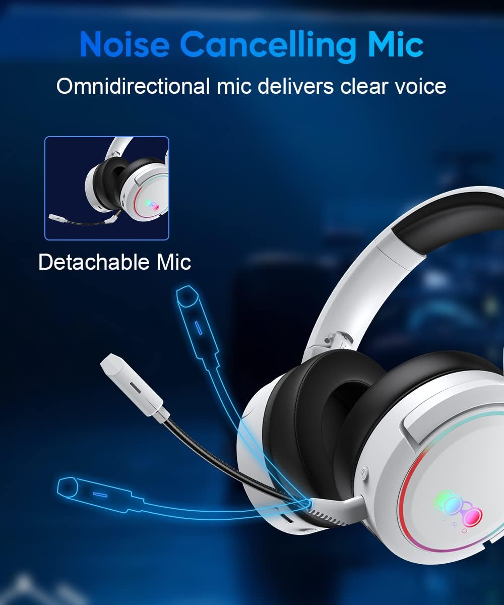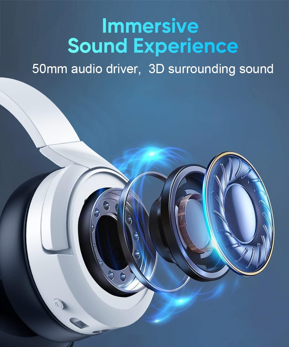 - 🎧【Surround Sound】 Ausgestattet mit 50-mm-Treibern liefern die kabellosen PC-Kopfhörer Stereoklang. Und der hochempfindliche Surround-Sound hilft Ihnen, die Feinde zu lokalisieren und zu verfolgen. Dank der extrem niedrigen Latenz können Sie sich