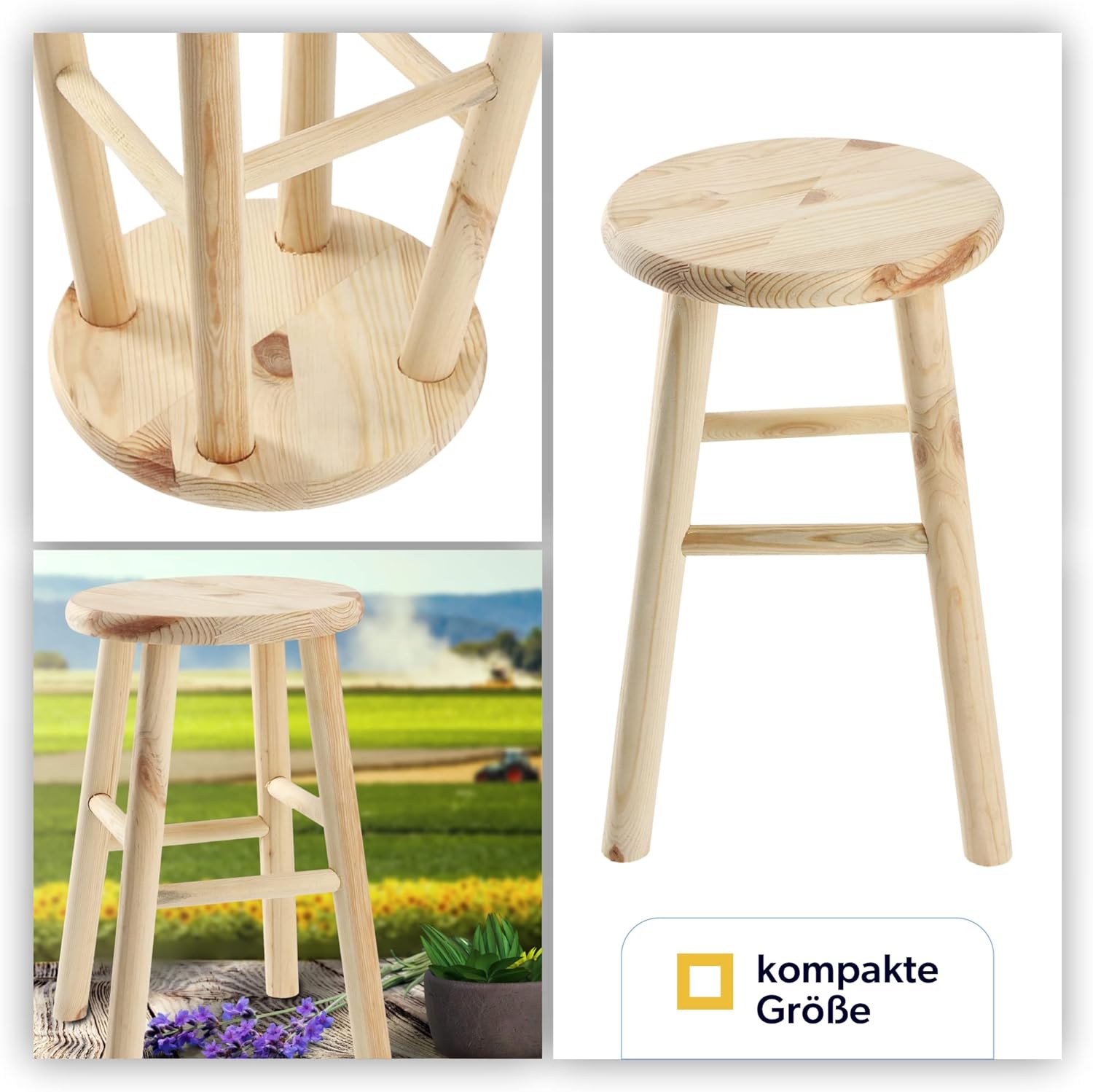 - Stabil: der Sitzhocker aus Holz verfügt über stabile Füsse, die das Wackeln verhindern. Dank seiner soliden Anfertigung und Stabilität ist es möglich sich darauf zu stellen, wenn es nötig ist. Der Tritthocker hat eine lange Lebensdauer.