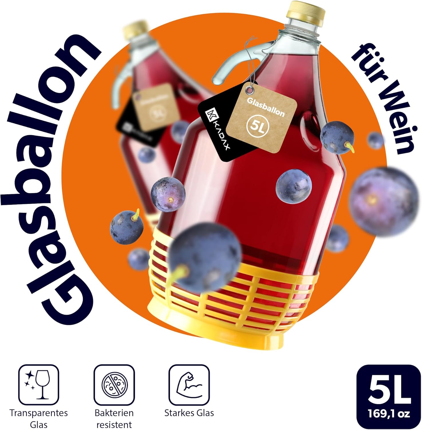 - ERGÄNZEN SIE IHRE VORRÄTE MIT UNSEREM PROFESSIONELLEN WEINBALLON. Lieber Feinschmecker – wir haben hier die Lösung für Ihre Probleme! Jetzt werden Sie noch mehr Wein oder andere Alkoholika herstellen können! Mit unserem Weinballon der Marke KADAX