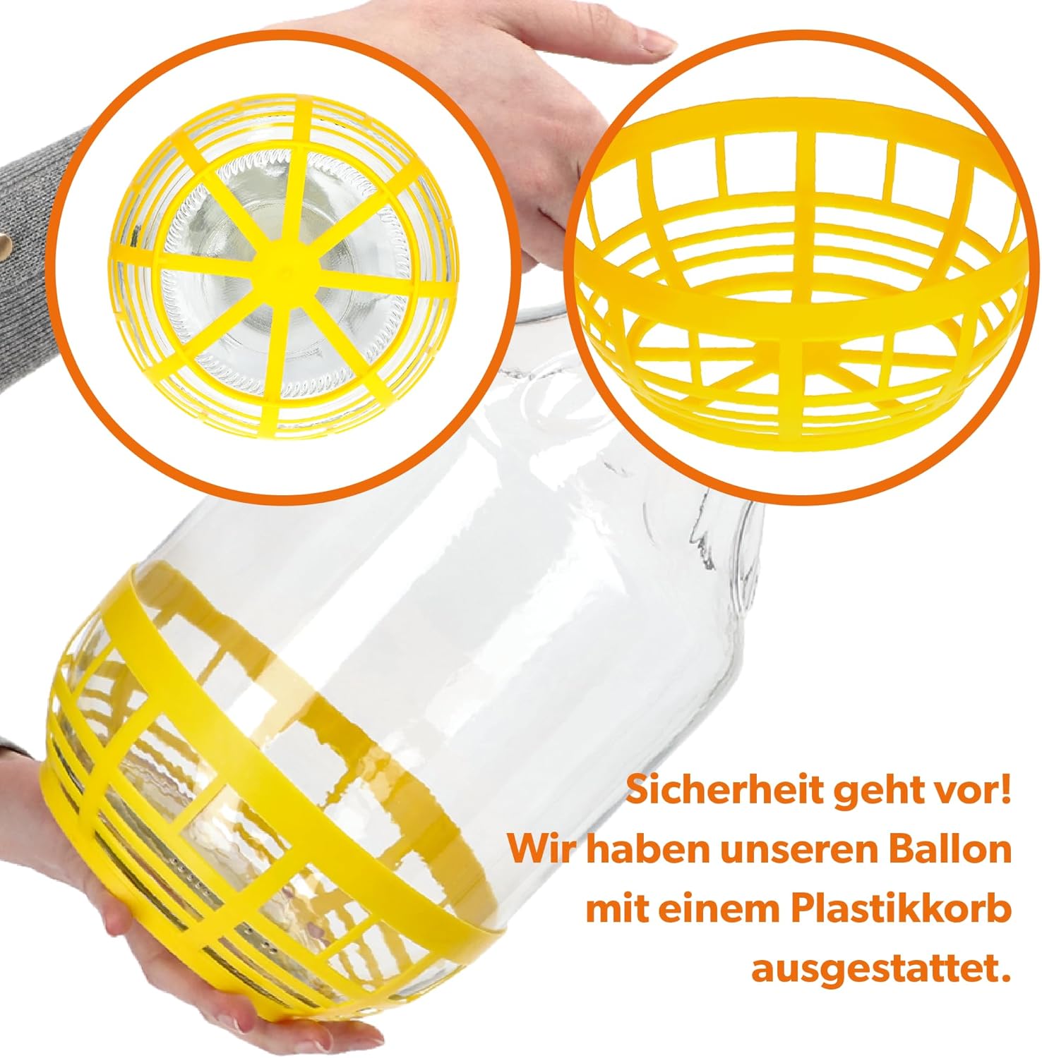 - ROBUSTE LÖSUNG, DIE FÜR KOMFORT SORGT. Sicherheit geht vor allem! Um Ihren Bedürfnissen gerecht zu werden, haben wir unseren Ballon mit einem Korb aus Kunststoff ausgestattet. Das Gefäss sollte nämlich nicht auf einem harten Boden stehen, deshalb