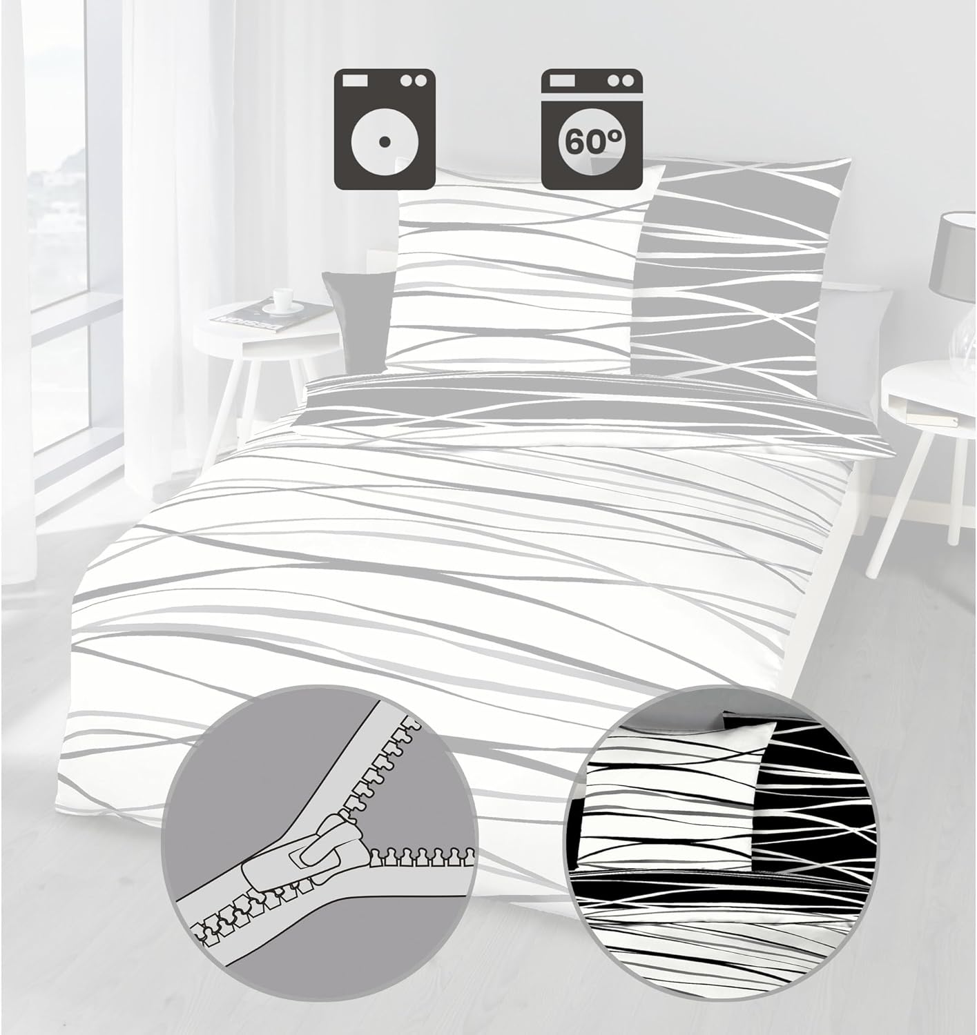 - Pflegeleicht: Das Bettwäsche-Set ist in der Waschmaschine waschbar bei bis zu 60°C und zudem Trockner geeignet (trocknergeeignet). Beim ersten Waschgang bei 30°C gewaschen werden