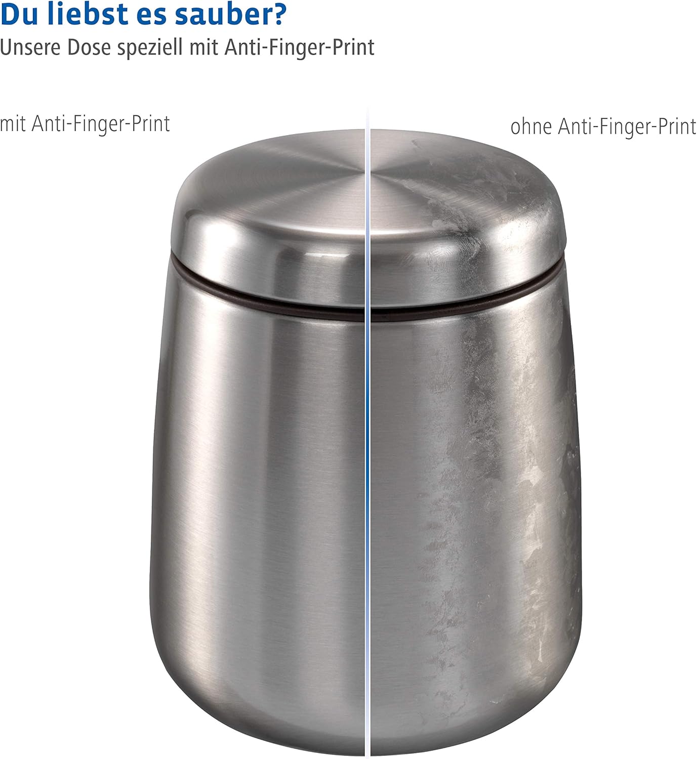 - DEIN SAUBERMANN: Edelstahlflächen verdrecken sehr schnell. Selbst kleinste Fingerabdrücke lassen die Aufbewahrungsdose dreckig wirken. Mit der speziellen XAVAX Anti Finger Print Beschichtung sind solche Probleme passé.