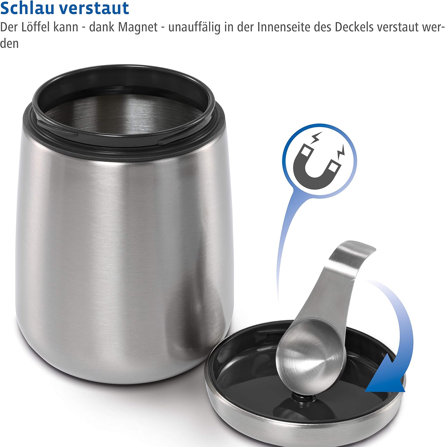 - DEIN ORDNUNGSMENSCH: Der mitgelieferte Dosierlöffel (8g) kann durch den im Deckel integrierten Magnet unauffällig und praktisch im Deckel befestigt werden. Somit hast du den Kaffeelöffel immer sofort griffbereit.