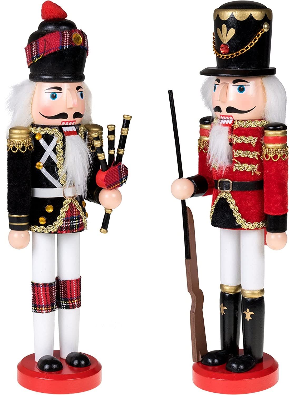 KAHEIGN 2Pcs Nussknacker Figuren Holz Nussknacker Soldaten, 30cm Traditionelle Weihnachten Nussknack