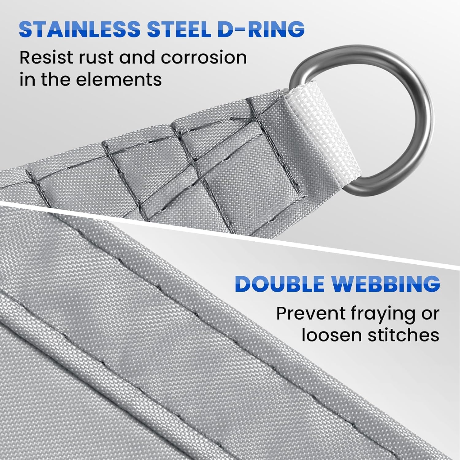 - [Einfach zu verwenden] Jede Ecke ist mit einem robusten D-Ring aus Edelstahl ausgestattet. Befestigen Sie den D-Ring einfach am Haken, um die Installation abzuschliessen (leichte Neigung von 20–40 Grad empfohlen).