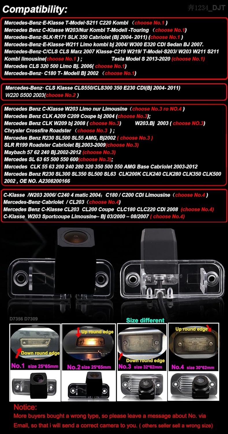 • Bitte überprüfen Sie die Abmessungen der Kennzeichenbeleuchtung oder den Installationsort und den AV-Anschluss, um einen Fehlkauf zu vermeiden(choose No.1)