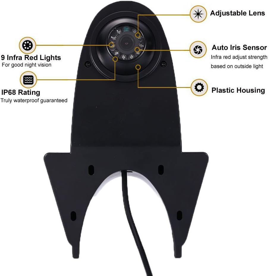 • ✔. Qualitätskamera von Sony, 1/4 Farb CCD Sensor, NTSC, Auflösung 628 x 582 Pixel, Erfassungswinkel: 130 Grad, Spannung 12V, Kameralinse flexibel verstellbar für optimale Sicht.