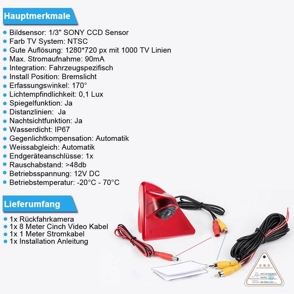 • ★ Fahrzeugspezifische Kamera integriert in die Bremsleuchtenglas, Die Optik Ihres Fahrzeugs wird nicht beeinflusst.