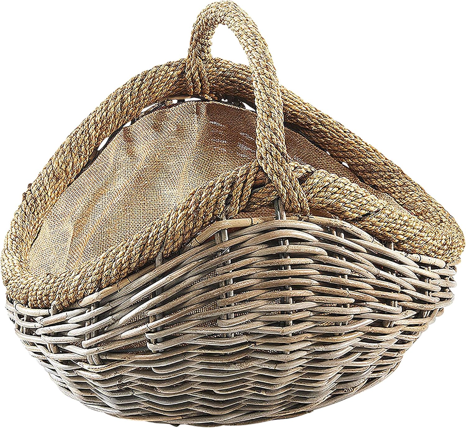 Kobolo Kaminholzkorb Holztrage Holzkorb für Kaminholz -Rattan- mit abnehmbarem Stoff aus Jute