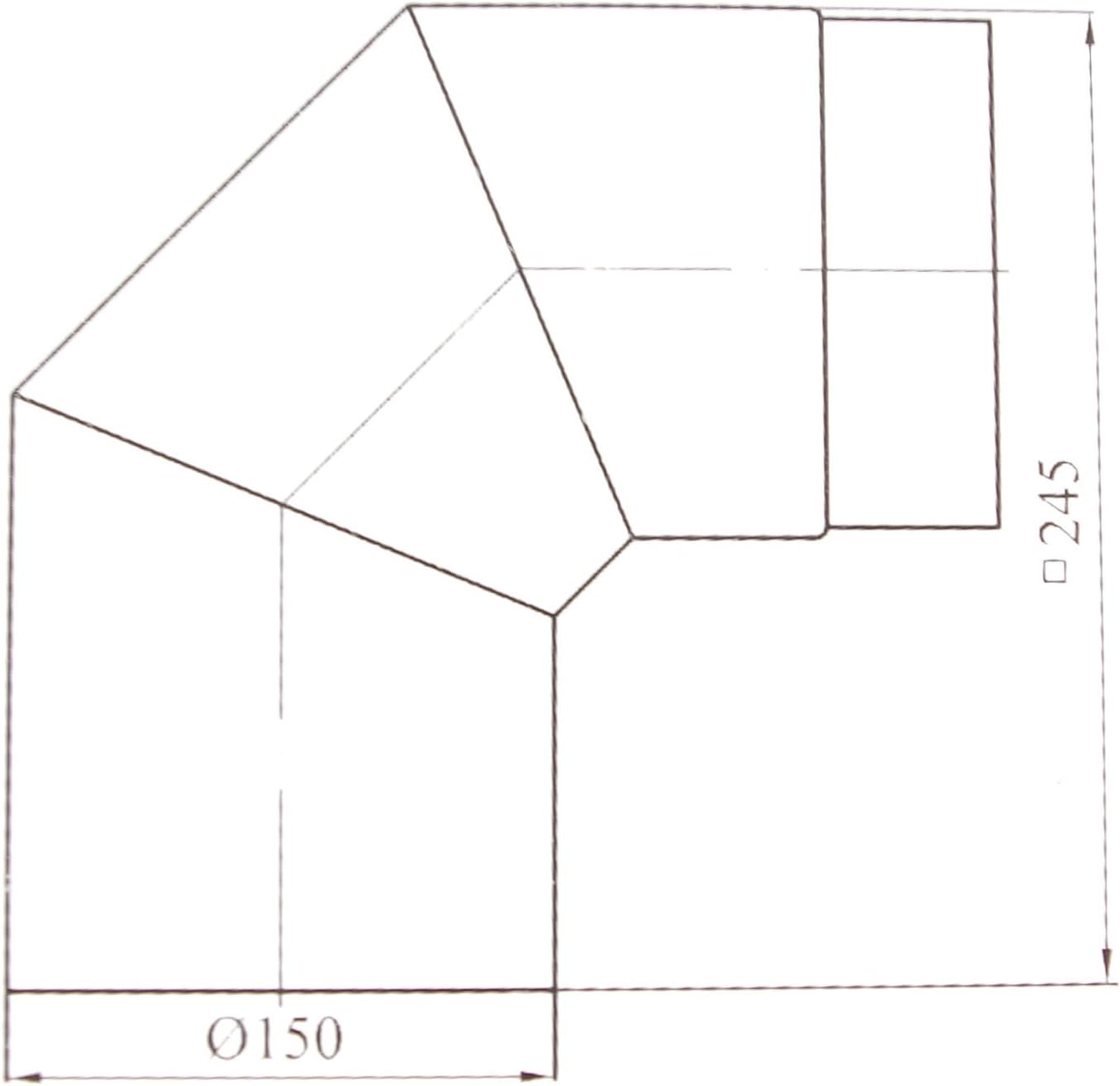 - Durchmesser: ca. 150 mm, Winkel: 90°, Materialstärke: ca. 2 mm, Gewicht: ca. 2,222 kg
