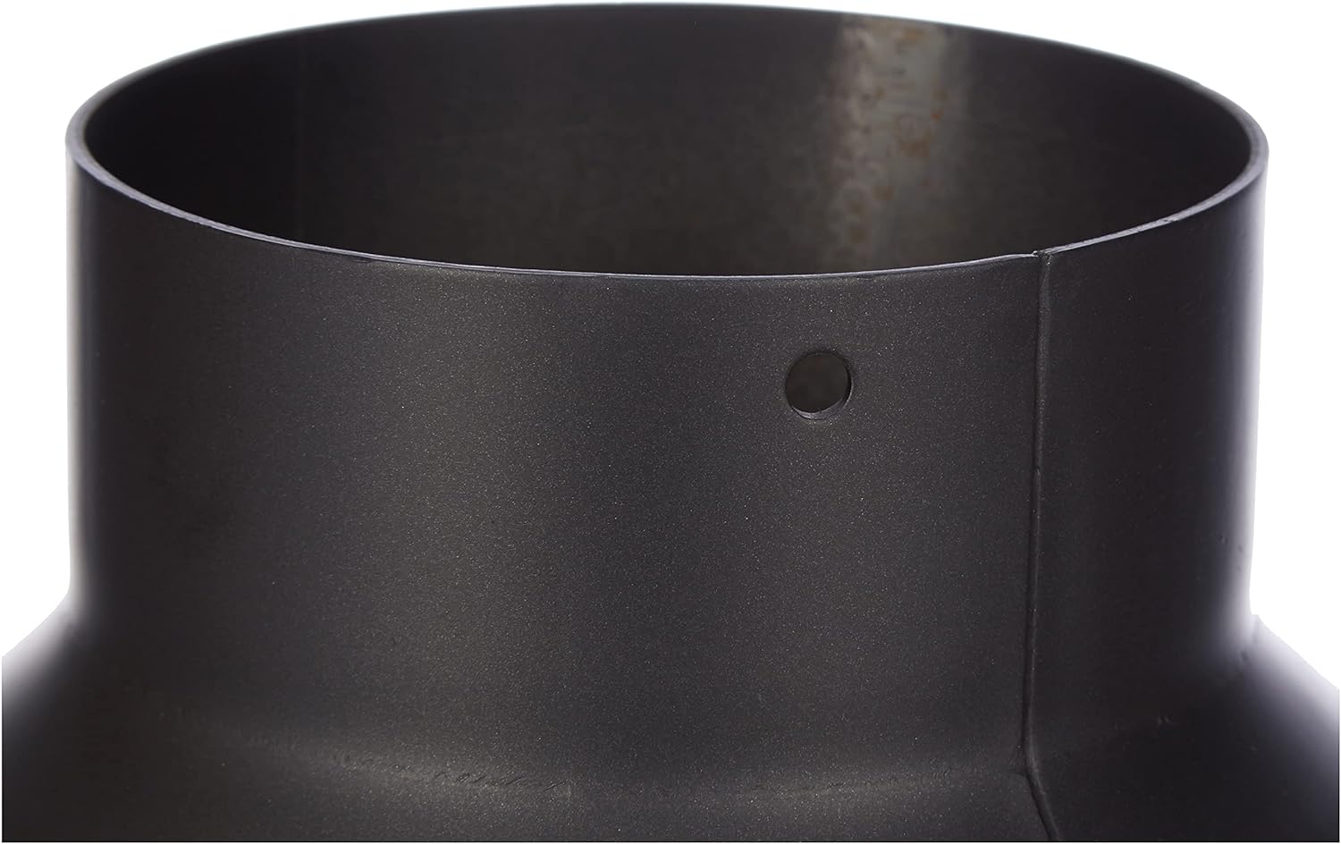 - Der schwarze Rohranschluss ist aus lackiertem Stahlblech gefertigt und ist komplett hitzebeständig